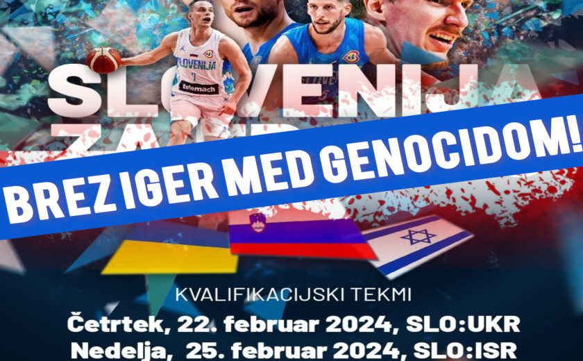 22. in 25. februarja bo slovenska košarkarska reprezentanca v Kopru igrala kvalifikacijski tekmi za evropsko prvenstvo proti reprezentancama Ukrajine in Izraela. Takrat bo minilo 141 dni od začetka zadnjega napada izraelske države na okupirana ozemlja Palestine, v katerem je do danes umrlo več kot 24 tisoč ljudi, od tega več kot 10 tisoč otrok. Menimo, da je nečloveško ostati tiho, ko bo v Kopru igrala reprezentanca države, ki izvaja genocid nad Palestinci in zaseda njihova ozemlja. Države, ki je še po besedah generalnega sekretarja ZN odgovorna za najhujše kršitve mednarodnih konvencij o človekovih pravicah po drugi svetovni vojni. Menimo, da je nečloveško se pretvarjati, da se ni nič zgodilo, ignorirati vsa grozodejstva in uživati v športnem spektaklu, ko ekipa igra pod zastavo, pod katero izraelske »obrambne« sile v Palestini aktivno izvajajo genocid.
