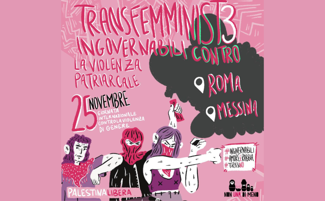 Tudi letos je bil 25. november dan številnih feminističnih protestov v raznih geografijah. V italiji so potekali protesti transfeminističnega gibanja Non una di meno – Niti ena manj. Že osmo leto zapored so se podale na ulice proti nasilju, ki je vsakodnevna realnost številnih. Pod geslom “Neukrotljive transfeministke proti patriarhalnemu nasilju” se je v Rimu in Messini ter nekaj drugih mestih zbralo preko pol miljona feministk iz cele italije.