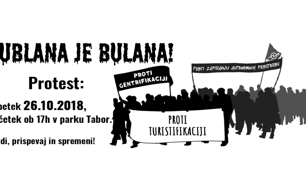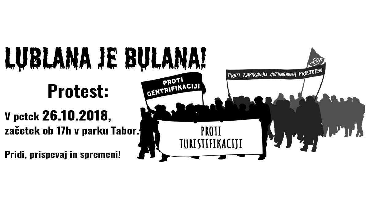 Mobiliziramo še naprej - v Ljubljani se krepi boj proti gentrifikaciji, turistifikaciji in elitizaciji mesta - naslednji petek, 26.10., bo potekal protest "Lublana je bulana!", kjer se bo med drugim protestiralo proti visokim najemninam in za ohranitev avtonomnih prostorov. Eden od preddogodkov pa bo že danes, ob 19h, potekal v Socialnem centru Rog - tam se ima zgoditi Antigentifikacijska gala večerja.