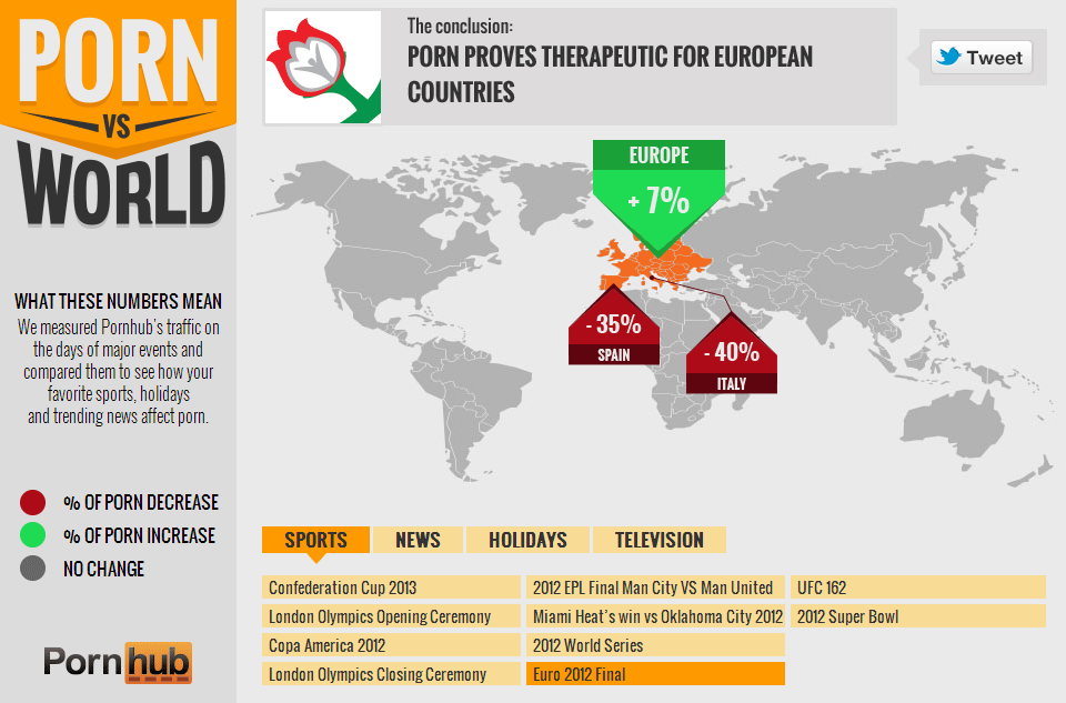 Danes o zanimivih statistikah, ki jih je v javnost dal PornHub in iskanju korelacije med pomembnimi svetovnimi dogodki ter masturbatornimi navadami.