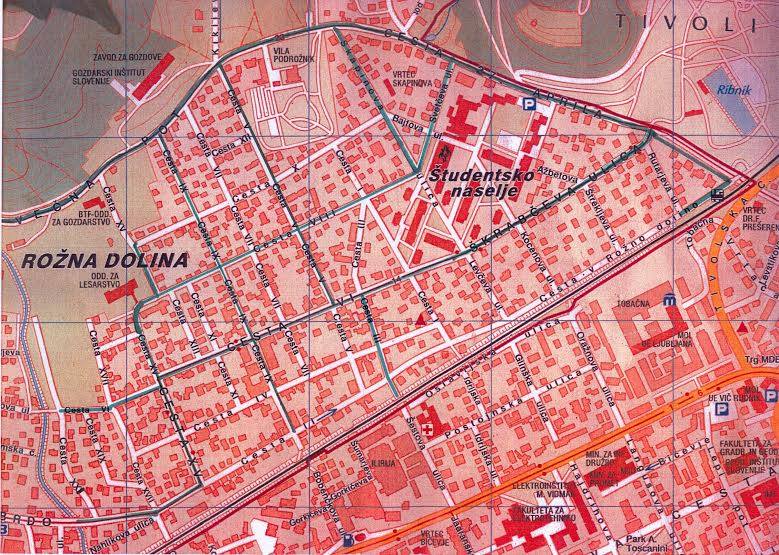 ... proti parkomatom v Rožni dolini...