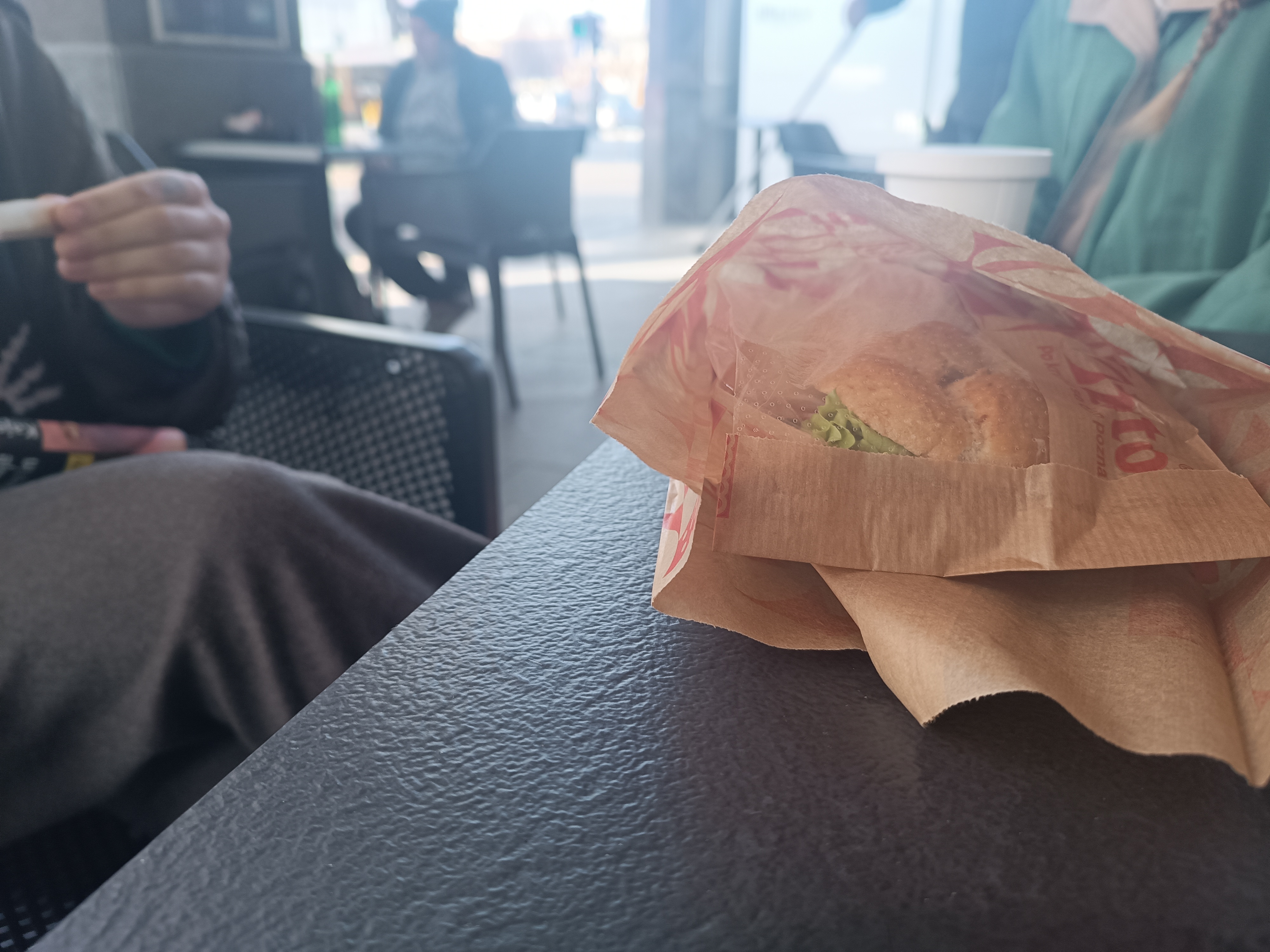 Naenkrat je v Žitu vrsta. »A ste vsi na bone?« zakliče prodajalka. Žal nismo. V vitrini je velik kup sendvičev, toliko jih je, da skoraj ni več prostora ‒ nekakšno poceni obilje. Pogled je skoraj malce kičast. Vsaj, če imate radi sendviče. Vitrina je opremljena z dvema napisoma: »Sendviči za študentski meni« in »Dnevno sveži sendviči«. Za pultom hitijo sem ter tja ‒ od kavomata do vitrine, od miz za blagajno ‒ trije zaposleni. Čeprav je od zunaj videti skoraj spokojno, kavomat nikoli ne utihne, pa tudi šumenje aparature za študentske bone ne. Minuta, dve ‒ in vrste ni več.