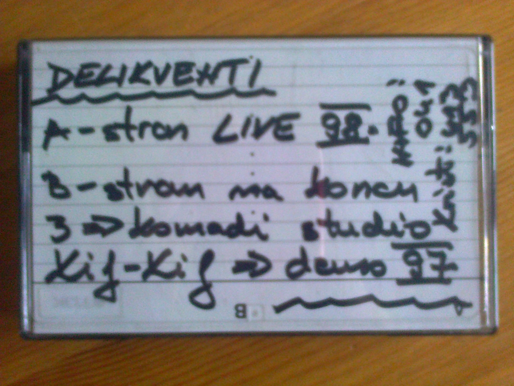 Med nas je zašla nekakšna promo kaseta slovenskega rock benda iz 90-ih - Delikventi. Poslušamo pa živi del iz koncerta iz leta 1998, iz neznano kje.