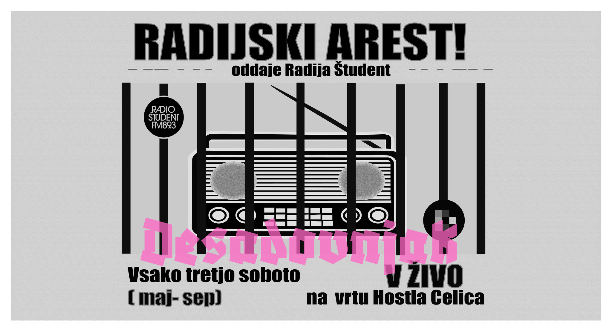 V soboto, 17. maja, se otvori Radijski arest – oddaje Radia Študent v živo iz Hostla Celica! Kot prvi v ciklu vsake tretje sobote med majem in septembrom se družimo z Desadovnjakom. Sara in Nika vas vabiva v soboto ob 20. uri na partijo binga, ki jo bomo v živo prenašali tudi v etru na 89 celih 3.