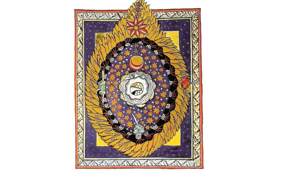 *Na naslovnici je Hildegardina upodobitev vesolja, circa 1165