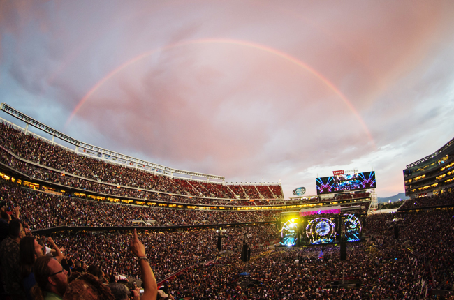 Truckin', uvodna pesem na nastopu Grateful Dead na stadionu Levi's v Santa Clari v Kaliforniji v soboto, 27. junija letos. Vemo, za kaj gre, saj vam to pripovedujem že ves zadnji mesec. Letos mineva petdeset let od začetka delovanja zasedbe Grateful Dead in dvajset let od smrti Jerryja Garcie. V ta namen so se preostali člani zasedbe, torej Bob Weir, Phil Lesh, Bill Kreutzmann in Micky Hart, tokrat s pomočjo klaviaturistov Bruca Hornsbyja in Jeffa Chimentija in s kitaristom Treyem Anastasiom iz zasedbe Phish, spet zbrali in odigrali niz poslovilnih nastopov z naslovom Fare Thee Well, kar je tudi refren iz pesmi Brokedown Palace. Sprva so bili predvideni trije poslovilni nastopi od petka, 3., do nedelje, 5. julija, na stadionu Soldier Field v Chicagu. Seveda tam zato, ker so na tistem stadionu pred dvajsetimi leti odigrali zadnji nastop pred smrtjo Jerryja Garcie. Ob tem so kajpak podrli vse rekorde obiskanosti kakega koncerta na omenjenem stadionu. Ker je bilo prijavljenih nekajkrat več od kapacitet, so naknadno dodali še dva termina, že omenjeno soboto, 27. junija, in nedeljo, 28., na stadionu v Santa Clari v Kaliforniji. Tam pa spet zato, ker so v Santa Clari pred petdesetimi leti Grateful Dead začenjali.