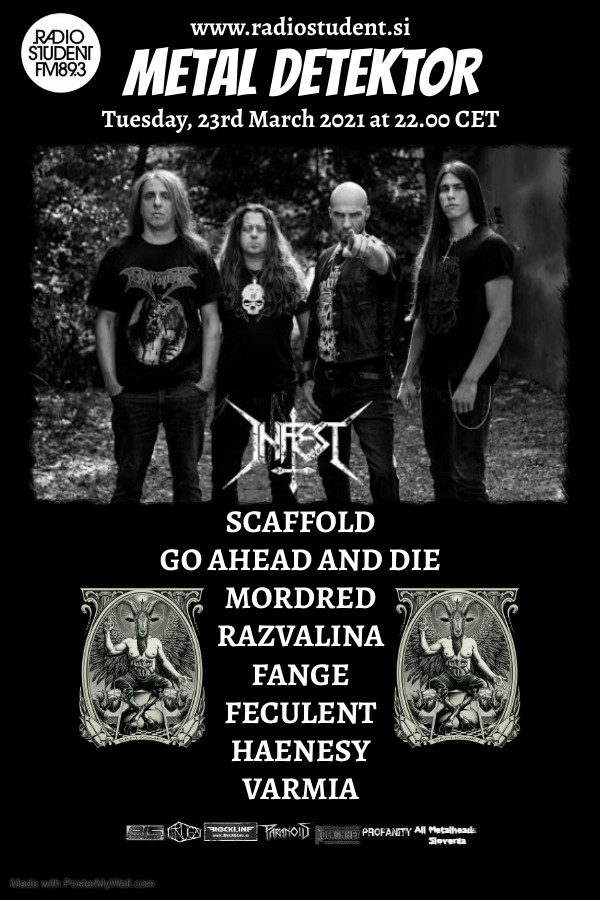 Tokrat vam Tegla in Nina podajata novosti – srbske death thrasherje Infest ter Scaffold, legendarne ameriške tehnic thrasherje Mordred, nov projekt Maxa Cavalere, Go Ahead And Die, najnovejši single slovenskih brutaličarjev Razvalina, industrial death/harsh sludge Fange iz Francije, death metalce Feculent iz Avstralije, black folk metalce Varmia iz Poljske in madžarske black metalce Hænesy.