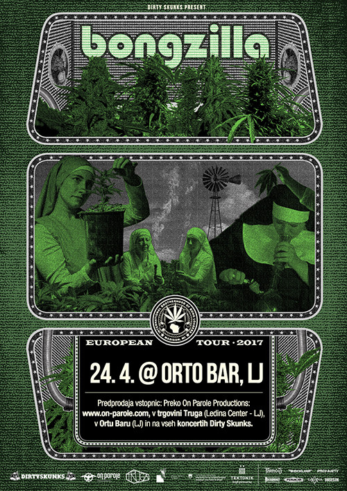 V ponedeljek so na svoj račun lahko prišli ljubitelji težkokategorne, počasnejše podtalne glasbe. Kolektiv Dirty Skunks nam je namreč serviral last minute koncert zasedbe Bongzilla, ameriških stonerjev in ljubiteljev opojne čudežne zeli, ki so se po večletnem premoru znova zbrali in se pravkar mudijo na evropski turneji. Začetki Bongzilla segajo v leto 1995, v svojem obstoju pa se lahko pohvalijo s štirimi dolgimi izdajami pri založbi Relapse ter več split in EP albumi. Še preden so podobne bende, denimo Bongwater, Bongripper, Belzebong, Weedeater, Cannabis Corpse, High on Fire in druge, metali v koš weed metal žanra, je kvartet že haral po svetu in izkazoval svojo ljubezen do mastnih zelenih vrhov, ki so prav gotovo njihova največja inspiracija, kot so to poudarili tudi v ponedeljkovem intervjuju na valovih Radia Študent. Čeprav so Bongzilla skozi svoj obstoj že večkrat koncertirali po evropi, so se tokrat pri nas ustavili prvič. V spodnji dvorani Orto bara smo bili torej prvič priča nastopu oziroma bong sessionu kvarteta iz Wisconsina.