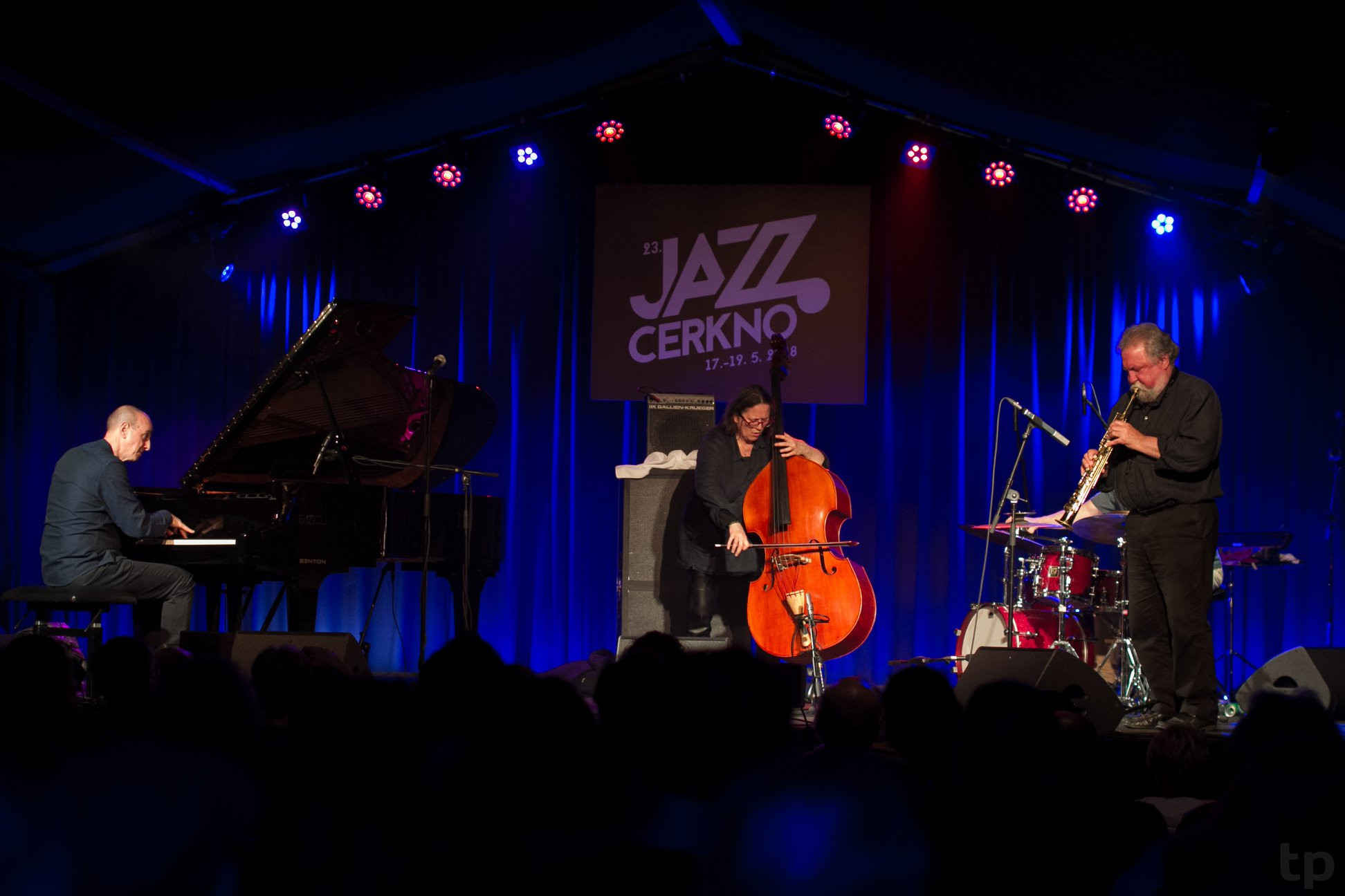 Na drugi festivalski dan smo se predali prazničnim momentom na razstavi prereza 40-letnega glasbenega udejstvovanja Zlatka Kaučiča, ki zajema vsaj fotografije, kritiške in druge tekste iz domačih logov ali tujine ter njegove številne diskografske izdaje. Na tiskovni konferenci smo se zabavali ali se čudili ob anekdotah iz Kaučičevega življenja, ki so segale vse od domačega neodobravanja njegovega navdušenja za bobne, do migriranja v tujino ter opravljanja interesantnih, včasih tudi zakonsko vprašljivih del za preživetje. Ves ta čas je Kaučič seveda kalil svojo bobnarsko spretnost, ki jo je ob povratku v Slovenijo prenesel na svoje sedaj že številne vajence, na letošnjem Jazzu Cerkno pa je to spretnost ponovno prikazal ob otvoritvi glavnega odra petkovega dne. Oder si je delil s starosto britanske in evropske freejazzovske scene – pihalcem Evanom Parkerjem –, priznano kontrabasistko Joëlle Léandre ter pianistom Agustíjem Fernándezom. Skupaj so se podali med nepredvidljiva tiha, čutna, pa tudi bolj impulzivna zvočna polja, pri čemer so naša ušesa – pa tudi oči – sledila vsem niansam in poudarkom. Morda je pogled zaradi jubileja in predhodno slišanih anekdot za odtenek močneje uhajal proti Kaučiču, k njegovi lahkotnosti igranja in nagajivemu izboru materialov, med katerim so se znašle tudi denimo pločevinke za pivo ... S takšnim načinom skuša Kaučič glasbeno zahtevno improvizirano zvočenje na lahkoten način približati vsakomur, pa tudi pokazati na možno izrabo vseh možnih rekvizitov v vsakem momentu.