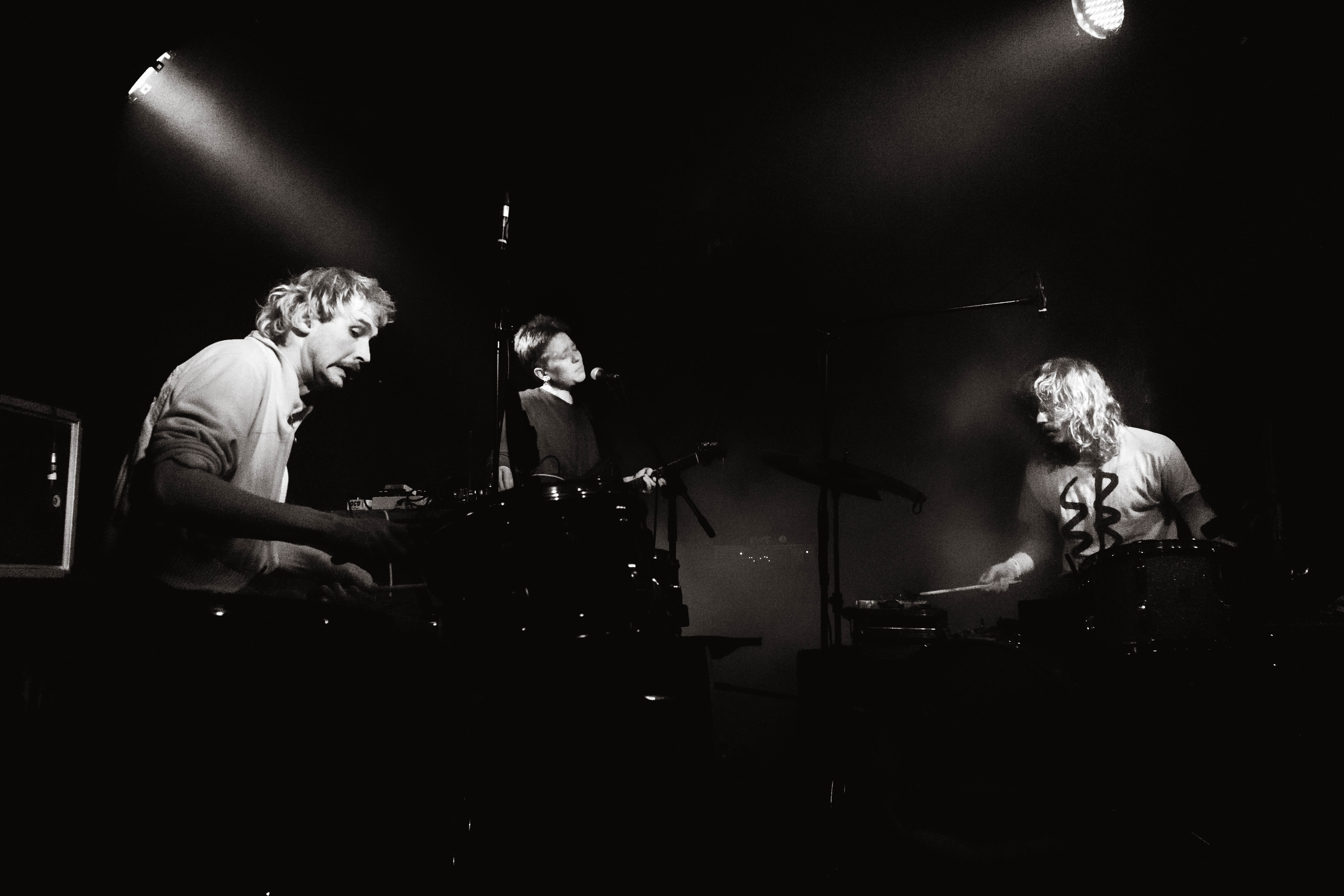 Drugi in poslednji akt večera, švicarsko-nemški bend Omni Selassi, smo pri nas nazadnje lahko slišali na zadnji ediciji festivala Ment, konec septembra pa je izdal tudi svoj studijski prvenec, naslovljen Dance or Dye. Predkoncertno utapljanje v slednjem je lahko dokaj varljiva gesta, saj bend v živo do napisanega materiala pristopa nekoliko drugače. Aranžmaji so spretno predrugačeni, forma komadov pa pravzaprav precej temeljito prezračena. Trio si napravi znaten prostor za koketiranja z nepredvidljivostmi in sporadičnimi premetavanji osnovnih motivov in šablon.