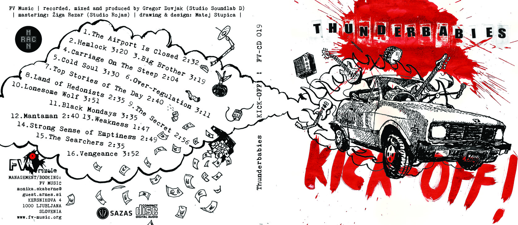 Ta vikend so novo ploščo pri založbi FV izdali domači rock'n'roll prvoborci Thunderbabies. Njihov drugi album sliši na ime Kick-Off in ponuja dozo nebrzdane rockerske energije. Zasedba, ki trenutno deluje v postavi Alenka Hrvatin Škerjanc alias Thunderbaby, Brane Škerjanc alias Bruc, Tomaž Berginc in Juš Senica, je v studiu Soundlab B v tednu dni posnela 16 kompozicij, ki jih odslej lahko slišite tudi na nosilcu zvoka.