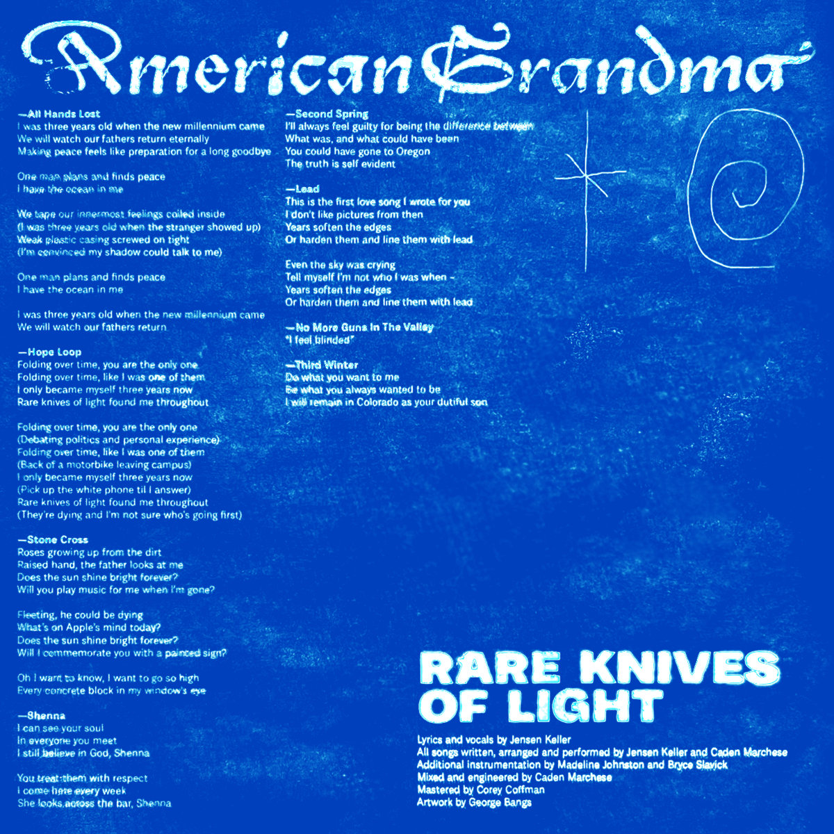 Rare Knives of Light je izšel davnega aprila letos, a se zdi, da v vsej svoji čustveni modrini in hladu, ki ga prikličejo inštrumentalne kompozicije, posebej komplementira ravno jesenski čas, ko se zadnji spomini poletja razblinijo in pustijo prostor novim pričakovanjem. V vsakem primeru pa nosi projekt American Grandma tisti subtilni čar, ki ima moč, da prepriča in prevzame slehernega ljubitelja slowcora in sorodnih glasbenih oblik.