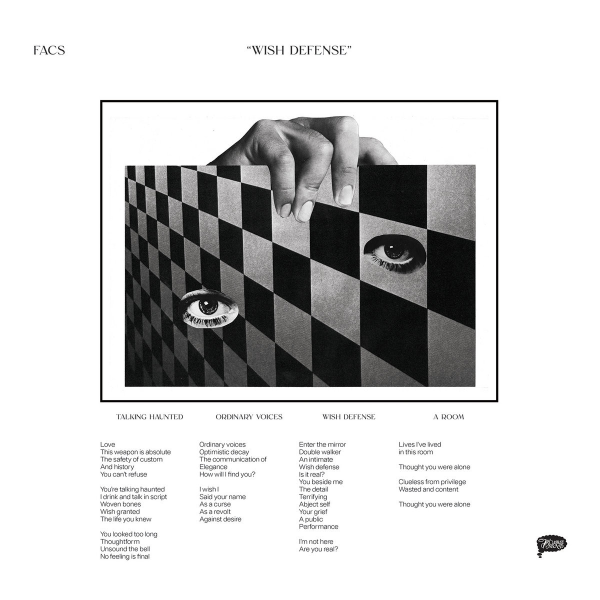 Facs niso nobeni novinci na sceni. Obstajajo od leta 2017, trenutni člani pa so delovali v zasedbah Disappears, 90 Day Men, Milemarker, Electric Hawk in Caffeine, če jih naštejemo le nekaj. Bobnar Noah Leger, basist Jonathan Van Herik ter kitarist in pevec Brian Case bi pod imenom Facs v devetdesetih letih prejšnjega stoletja pristali v bazenu neodvisnega rocka oziroma indieja in bil bi mir. No, ker je ta beseda že dolgo časa oskrunjena, se sami ne mučijo glede etiketiranja. Zvesti so minimalizmu v genezi komadov, psihedeliji v kombinaciji s pankovsko surovostjo, organiziranim hrupom v spoju s spevnimi zveni. Nasploh se pri albumu Wish Defense zdi za hitro pretočno vsebino brez hitrega tempa, ki zna ob površnem prisluhu v dobre pol ure steči mimo brez posledic. Toda že krajši osredotočen ošvrk dokaže nasprotno.