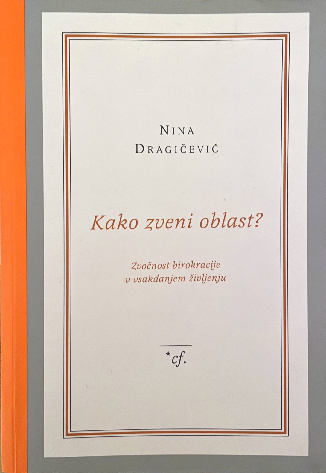V čakalnici urgence moškemu brez urejenega zdravstvenega zavarovanja odrečejo zdravljenje, čeprav ga potrebuje. Ob tej situaciji in njej podobnih se morda sprašujemo, zakaj vendar ob očitni krivici nihče ničesar ne reče. V delu Kako zveni oblast? sociologinja Nina Dragičević na to zagato ponudi razne odgovore, med katerimi so skrb za mir v medicinski ustanovi v imenu zdravja, spodobnost, podpiranje sistema in še nekateri drugi. Res, trn v peti sociologije družbenih sprememb je nezapolnljiva praznina v odgovoru na vprašanje, zakaj se zatirani enkrat uprejo, drugič pa ne. Avtorica v delu, ki predstavlja revidirano verzijo njene doktorske disertacije, v iskanju odgovora na pomoč vpokliče študije zvočnosti.