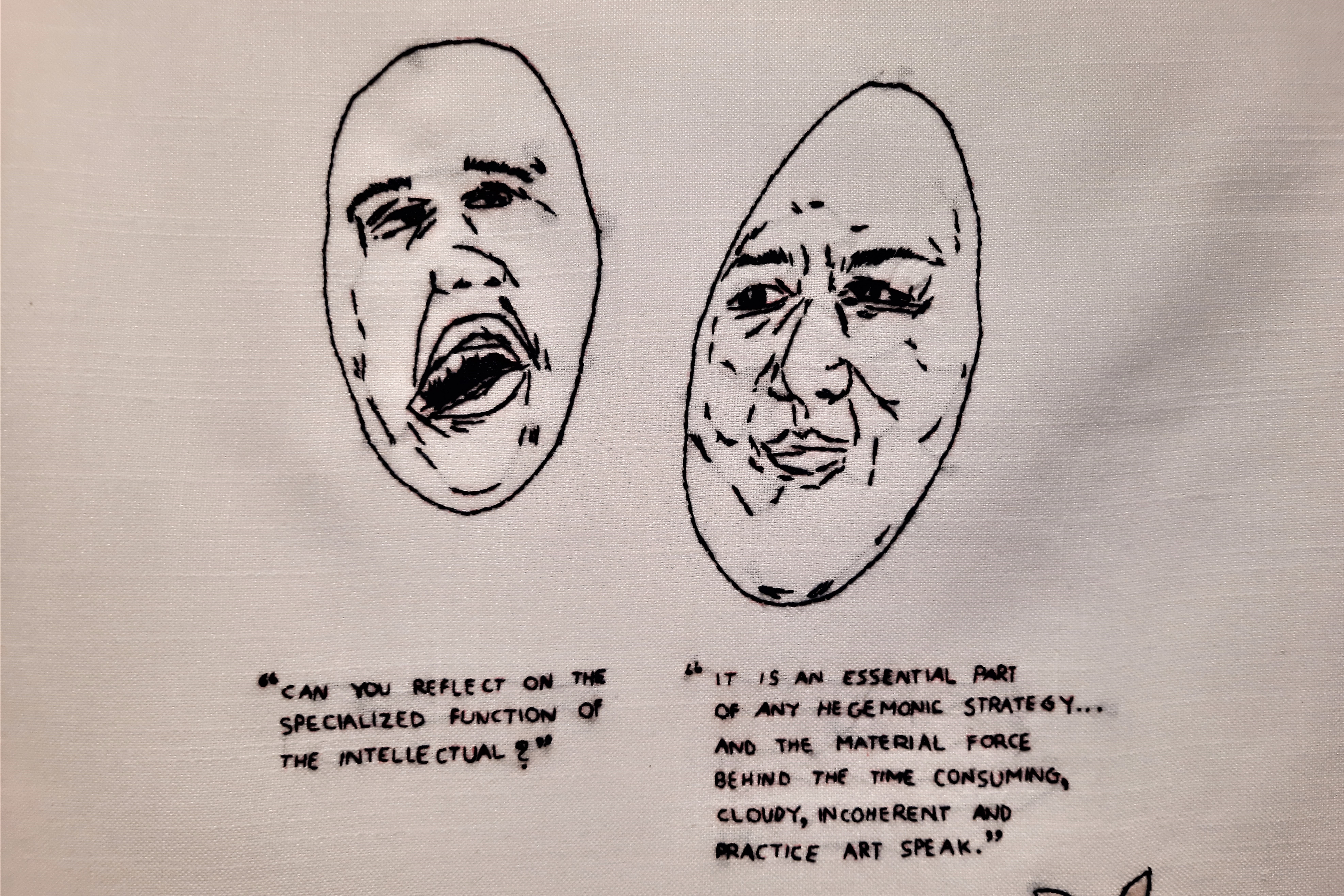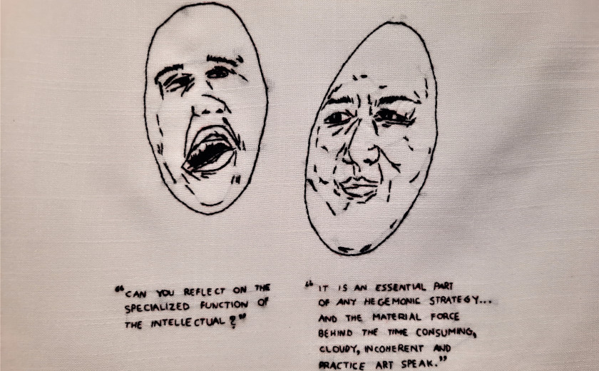 Umetnice preizprašujejo različne skupnosti, druži pa jih pristop, saj se teme lotevajo z raziskovanjem jezika, pa naj gre za ples, jezik religije ali specifičen jezik ljudi, ki se gibajo v umetniški sferi. Na slednjega se je osredotočila umetnica Vidha Saumya, o njenem delu pa več pove Borić.