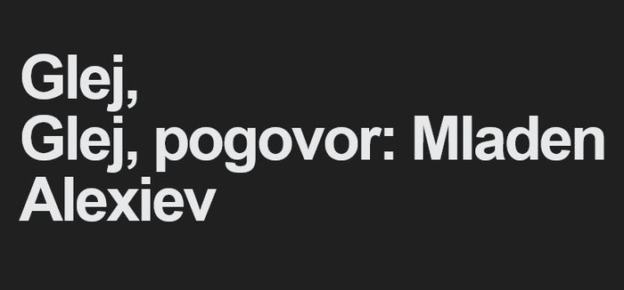 V Gledališču Glej gostuje bolgarski tandem, ki sestoji iz filozofa Stanimirja Panayotova in dramaturga Mladena Alexieva. Alexiev je diplomiral gledališko produkcijo v Sofiji in ustvarjal več projektov v Bolgariji. Z ekipo eksperimentalnega Gledališča Glej se je spoznal na mednarodnem srečanju v Sofiji, poznanstvo pa je rezultiralo v povabilu Marka Bratuša k skupnemu projektu. Tako je s Panayotom, njegovim kolaboratorjem in sodelavcem, prišel v Ljubljano in sedaj bo poskušal v sklopu treh dogodkov v enotedenskem procesu razgraditi osebnost sodobnega ustvarjalca in poiskati izhodiščne vzroke za nadaljnje ustvarjanje v gledališču. O razlogih za ustvarjanje govori Alexiev: