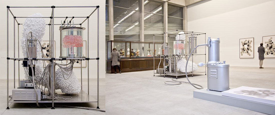 Geslo, da je Hegla treba obrniti na glavo, je že staro, a Thomas Feuerstein se je tega lotil znova in opremljenemu z najsodobnejšo tehnologijo mu je to uspelo na povsem drugačen način kot Marxu. Njegov projekt Pankreas je stroj, v katerem bakterije razgrajujejo Heglovo Fenomenologijo duha iz celuloze v glukozo, ta glukoza pa hrani v steklene tube vsajene možganske celice. Proces spreminjanja idej duha v meso si lahko ogledate na otvoritvi, ki bo danes v Galeriji Kapelica. Za pojasnilo skulpture smo prosili Thomasa Feuersteina.