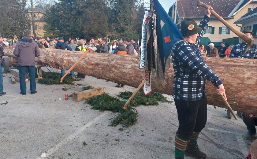 Po tem, ko Begunjci in Begunjke ogromen ploh trudoma zvlečejo na mesto, ki so mu ga pripravili na izpraznjenem in skrbno ograjenem parkirišču, smo priča hipni kontemplaciji o običaju in napovedi nadaljnjega programa – kar v verzih.