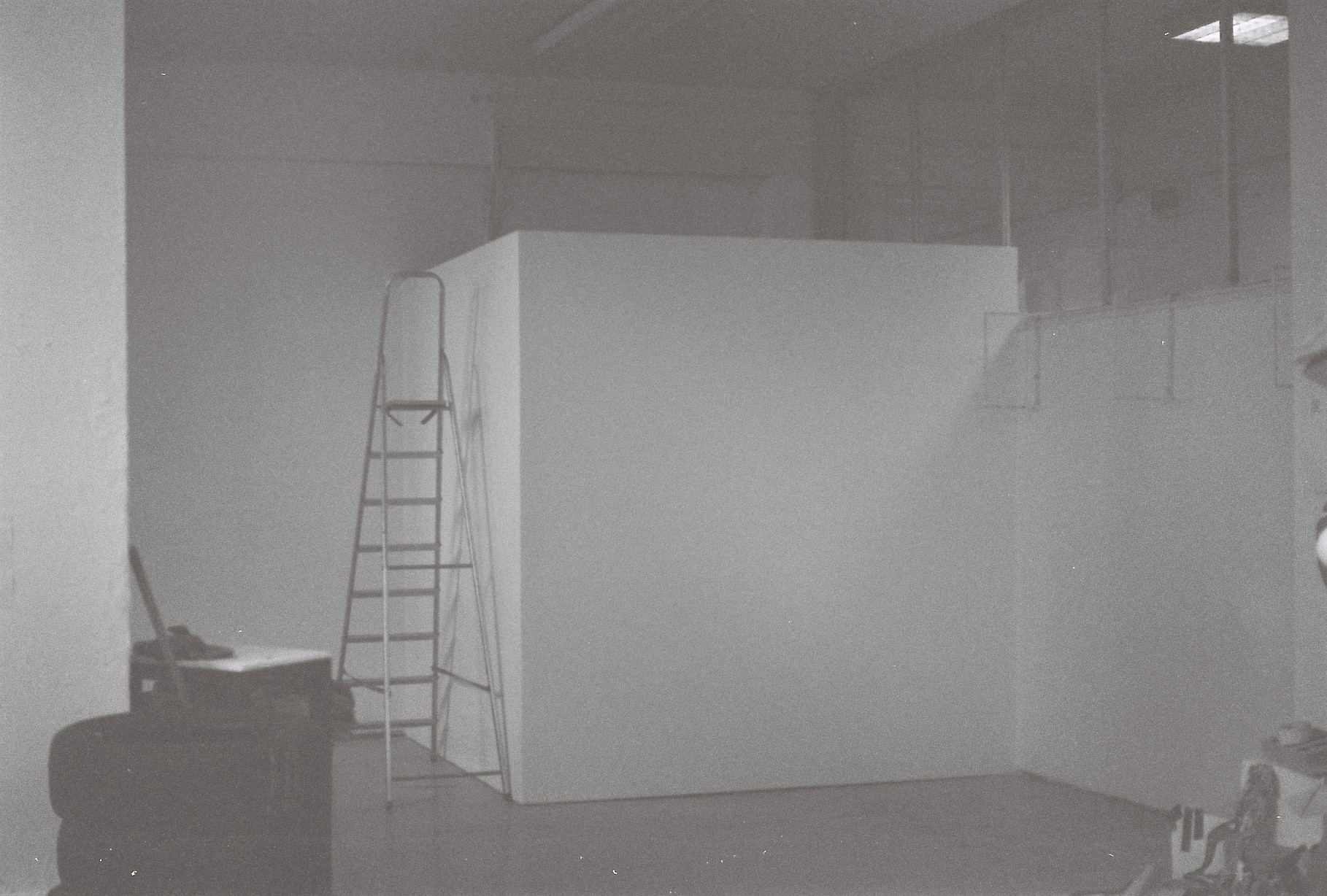 Potem ko stopimo skozi vhodna vrata, dvakrat zavijemo levo in se sprehodimo do konca hodnika, na zadnjih vratih na levi zagledamo napis na kovinski ploščici: Galerija Kiparskega oddelka Akademije za likovno umetnost in oblikovanje Univerze v Ljubljani. Ob vstopu se skorajda zaletimo v belo steno, ob kateri navidezno lebdi majhna knjižica, v kateri je zbrana dokumentacija procesa gradnje galerije in predstavitev projekta. Prva razstava je namreč predstavitev samega prostora, zgrajenega znotraj kiparskega ateljeja, in načina razstavljanja v njem. V zinu lahko med drugim preberemo, da finančni plan za tri dogodke predvideva tri evre za tri krat po 500 gramov margarine za pripravo pit, da je vsakršna publiciteta dobra publiciteta in da moramo imeti prijatelje blizu, sovražnike pa še bližje. Na svoji levi nato zagledamo devet belih listov. Na njih so natisnjeni meseci in dnevi, ko sta avtorici razvijali projekt.