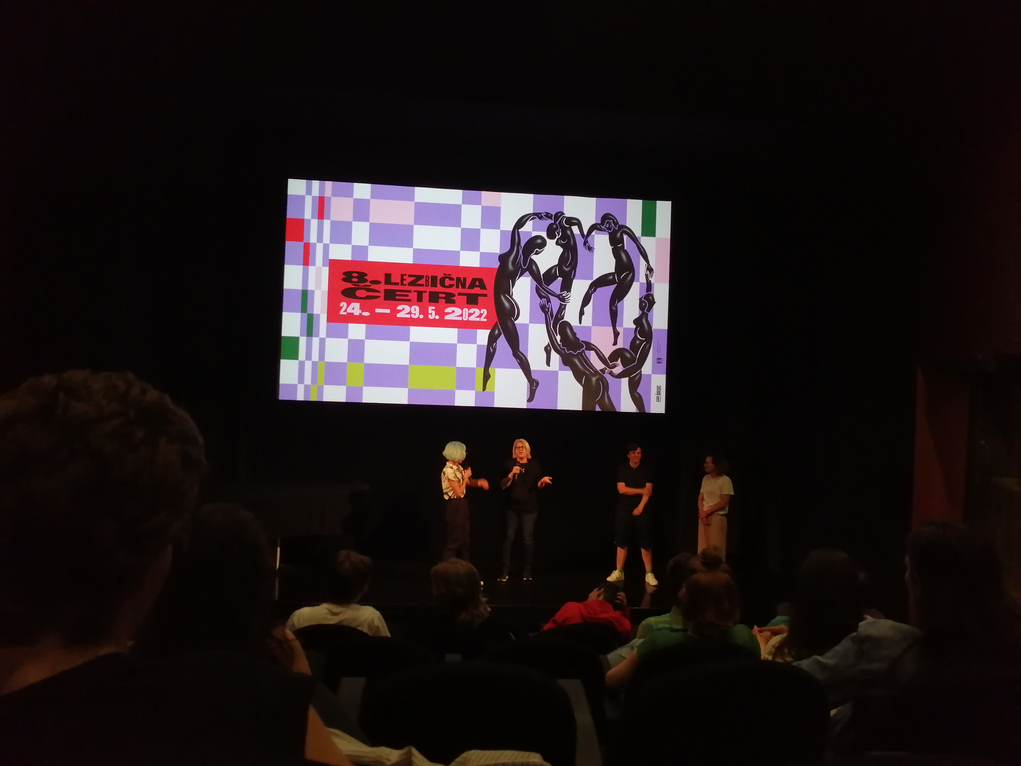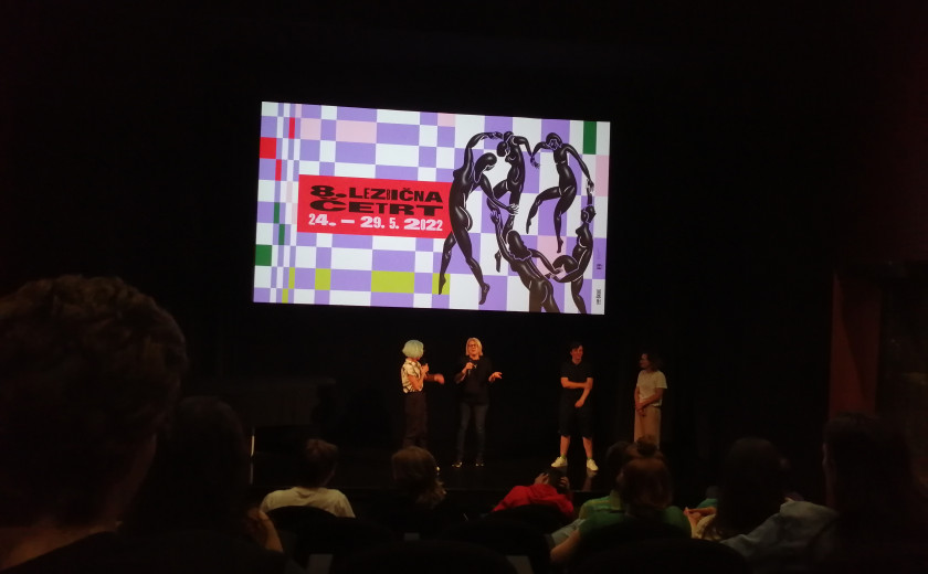 Drage poslušalke, dragi poslušalci, pozdravljeni v današnjih Kulturnih novicah, v katere vstopamo skozi filmski objektiv. Pretekli torek zvečer smo se namreč podali na otvoritev 8. festivala Lezbična četrt v ljubljanski Kinoteki, kjer je bilo predvajanih sedem lezbičnih kratkih filmov. Sledil je kratek pogovor s tremi režiserkami, Petro Hrovatin, Mojco Koželj in Simono Jerala. Pogovor je moderirala kuratorica filmskega programa, Suzana Tratnik, ki opiše proces izbire filmov.