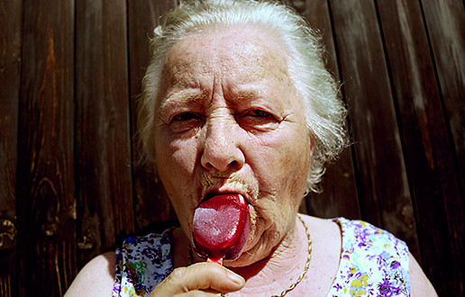 Portretiranje babice Hilde je projekt v nastajanju, saj Urška babico portretira že nekaj let. Postavlja jo v različne inscenirane kolaže, kjer namenoma izzove različne babičine odzive in skozi objektiv lovi njeno sporočilnost in osebnost. Kako to doseže, znova Premik.