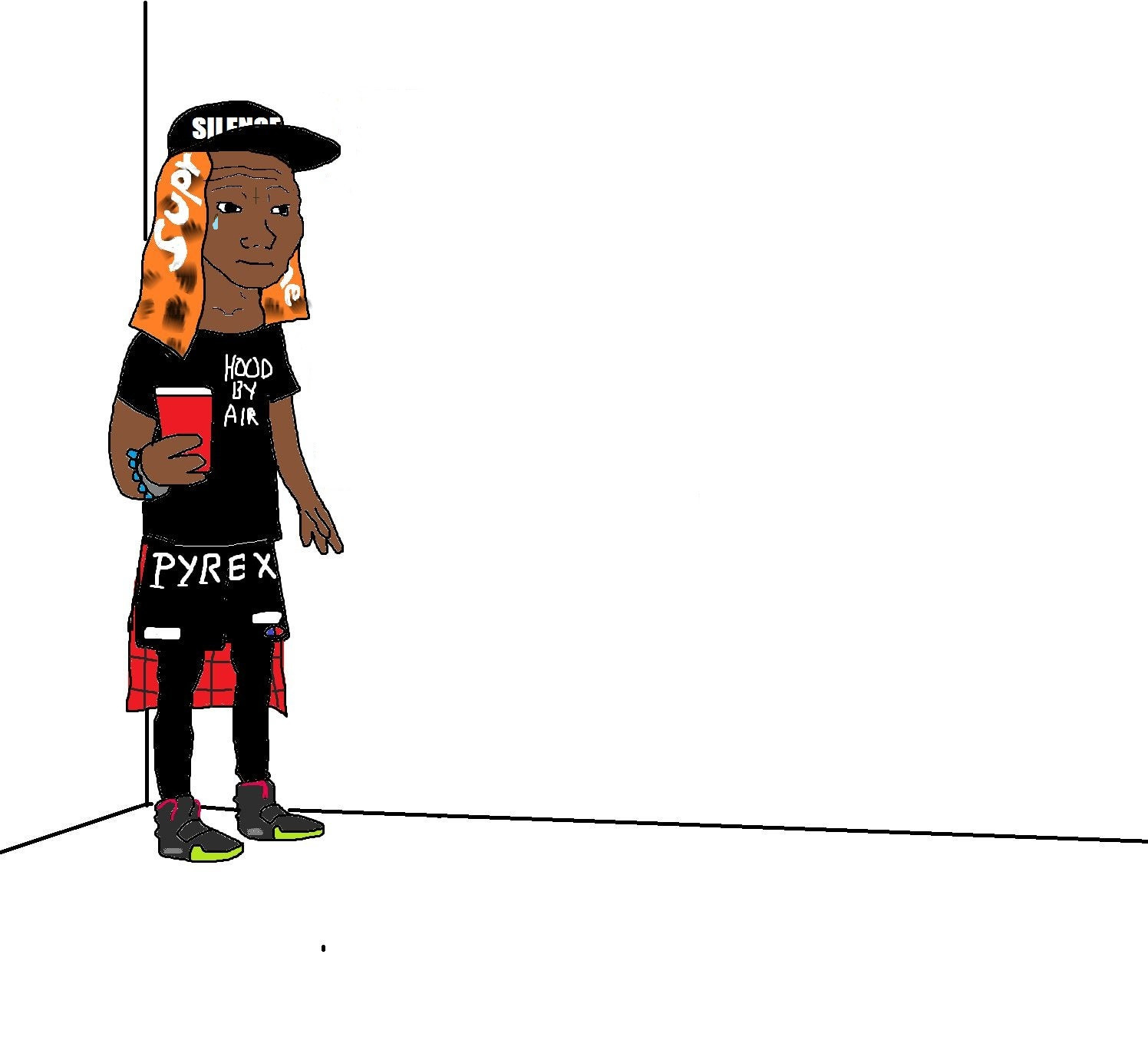Na sliki: Pyrex Vision je bil Virgilov drugi poskus preboja na streetwear sceno. Znamka je delno in za kratek čas uspela po zaslugi »Pyrex« kratkih hlač, ki so bile dovolj velik hit med hypebeasti, da so dobili vidno mesto v eni boljših iteracij »This party sucks« mema. Dotični meme je tudi bil naš prvi stik z Virgilom (tega takrat nismo še vedeli ... ).