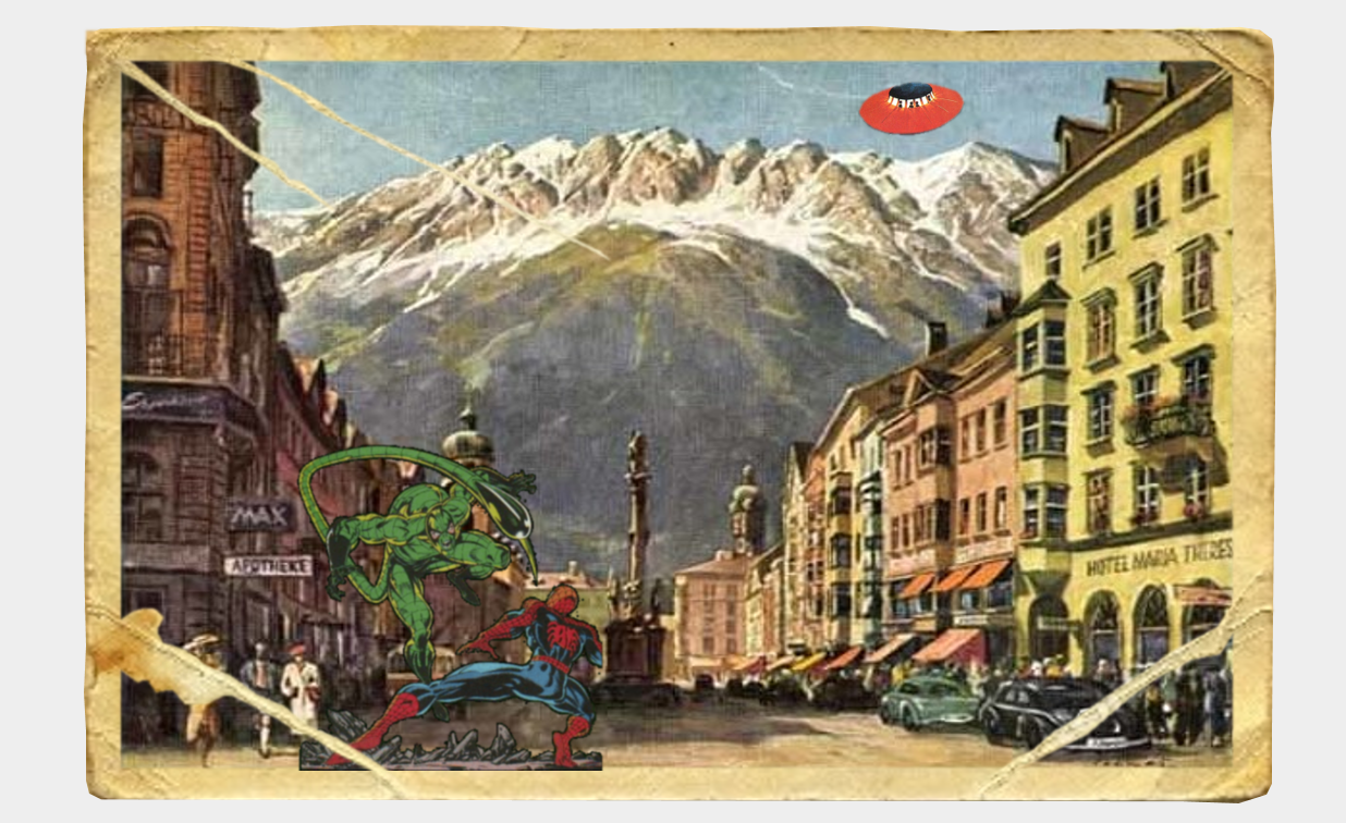 RAZGLEDNICA Z ZLIKOVCI, VESOLJCI IN SUPERJUNAKI IZ OSRČJA ALP