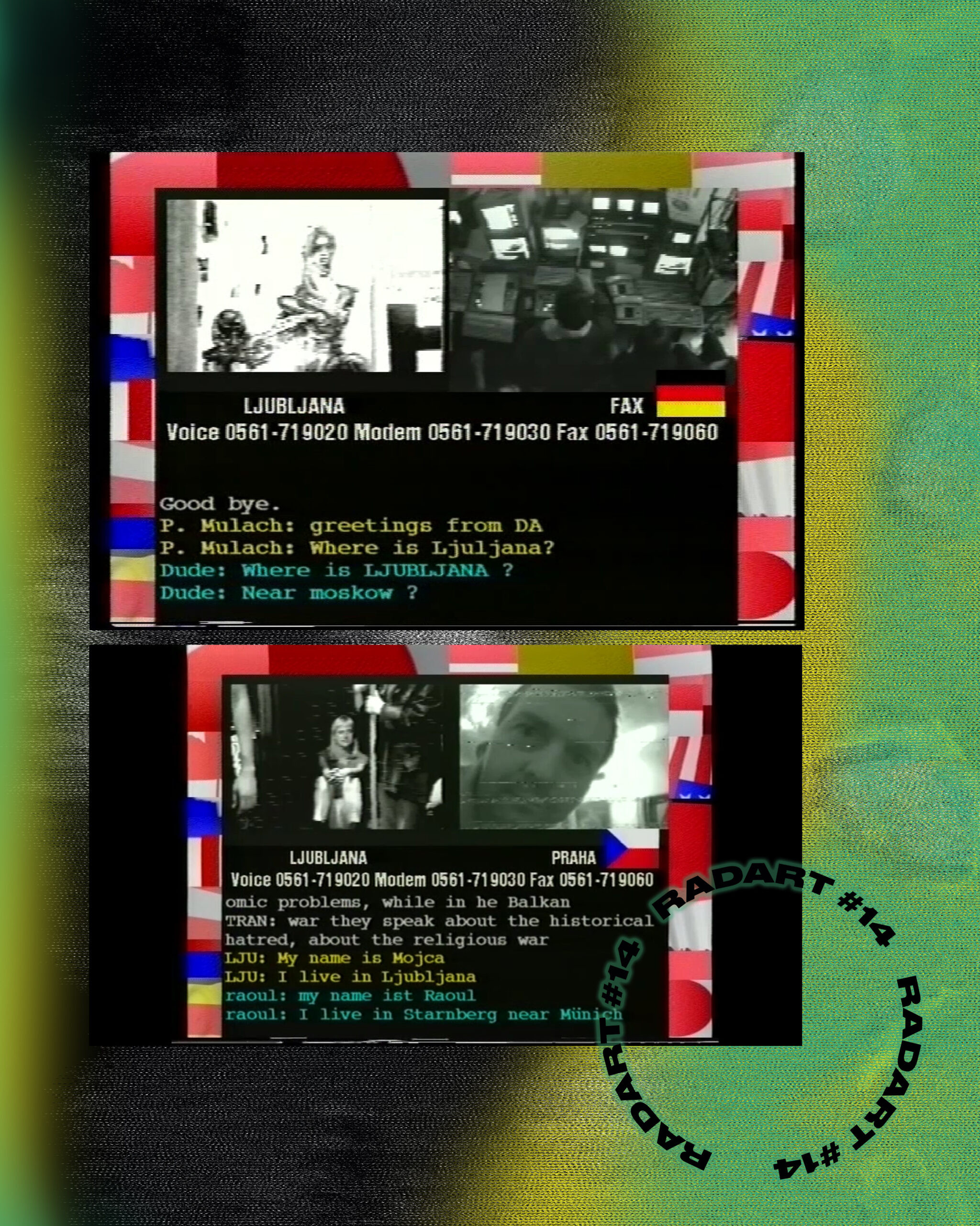 Radio listeners though, will have the opportunity to listen to a soundscape created by the unique collaboration of Košnik-Savski-Prinčič, which features voices of numerous participants and passers-by from a quarter of a century ago, to name just a few: Roberto Truzardi, Gerard Couty, Monika Glahn, Dagmar Gabler, Ulf Freyhof, Mike Hentz, Salvatore Vanasco, Karel Dudesek, Slavoj Žižek, Rastko Močnik, Rade Šerbedžija, Jure Longyka, Mojca Dimec, Mare Kovačič, Miran Divjak, Ema Kugler, Mojca Kumerdej, Lidija Bernik, Silvo Zupančič, Mira Berginc, Martina Vičič, Aleks Žagar, Leon Rolih, Boštjan Napotnik, Katarina Pejović, Alenka Veler, Bruno Subiotto, Igor Brlek, Miha Zadnikar, Sabina Potočki, Špela Stare, Peter Kisin, Borut Osonkar, Ali Žerdin, Miha Fras, Tomi Matič, Nataša Serec, Namita Subiottova, Franci Cotman, Vuk Čosić, Jaka Železnikar, Špela Virant, Jurij Krpan, Brane Zorman, David Kodrič, Viva Videnović, Jernej Kolenik, Niko Novak, Vito Rožej, Ksenja Perko, Katja Šoltes, Barbara Kelbl, Jana Slaček, Uroš Prestor, Krištof Savski, Mojca Savski, Boštjan Vrhovšek – Botz, Edo Pajk, Mario Kapelj, Barbara Borčič, Katjuša Kovačič, Koen Van Daele …