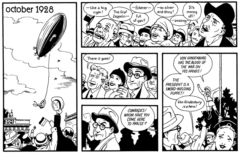 Reportažni kolaž s pogovora o stripu Berlin iz ZRC SAZU z Izarjem Lunačkom, Zoranom Smiljanićem in Jasonom Lutesom prek Skypa.