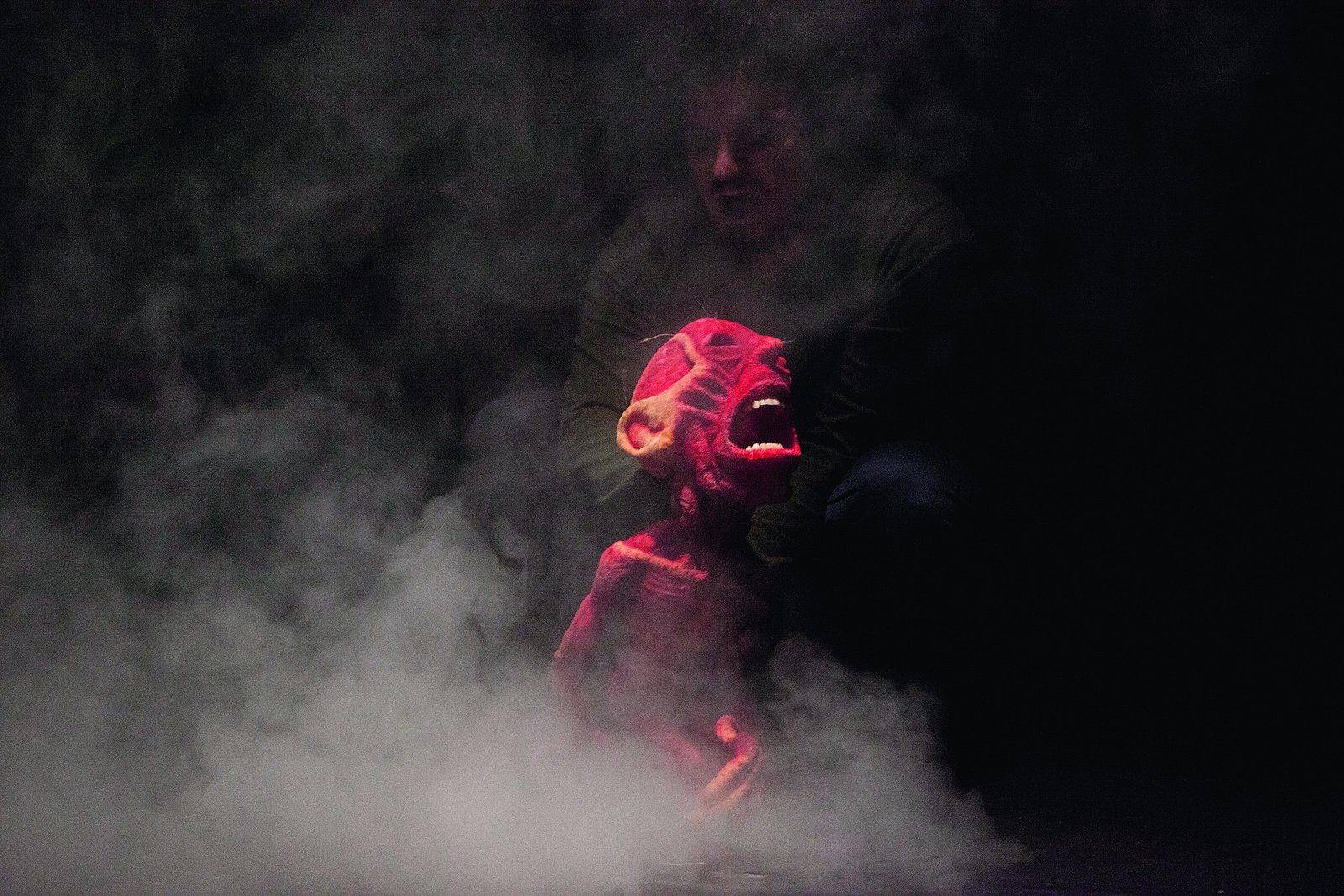 Festival Lutke je tudi letos nepresenetljivo s seboj pripeljal precej večjih produkcij, ki nas lahko očarajo že zgolj z materialnostjo, s katero se udejanjajo. V kontekstu festivala lahko zato včasih celo bolj izstopa manjša, preprostejša predstava. Ena takšnih je bil letos Teror, kot je bil naslov predstave preveden iz izvirnega francoskega Terreur. Uprizoritev francoskega gledališča Les Yeux Creux je zelo minimalistična: na odru sta samo igralec in lutka brez dodatne scenografije ali soigralcev. Tudi povzetek dogajanja polurne miniaturke za odrasle težko razvlečemo na kaj dosti več kot lutka, ki kriči od bolečin.