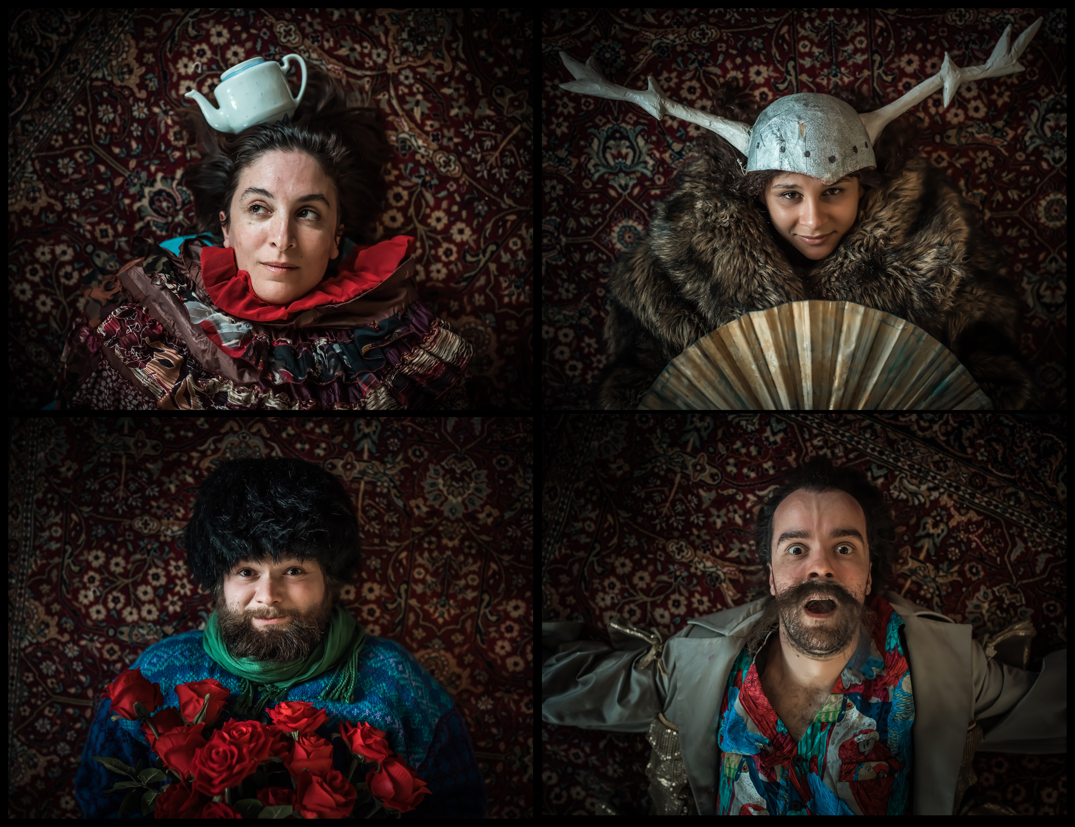 Eklektična predstava, ki znotraj vizualne in zvočne podobe raziskuje različne vsebinske nivoje pravljic ter ponuja formalno pripovedne preobrate in presenečenja, se močno zanaša na inovativno umetniško silo nastopajočih. Treba je izpostaviti tudi tehnično dovršenost glasbene zasedbe Pantaloons, Aljaža Markežiča na tubi, Davida Nika Lipovaca na bobnih in Luke Beliča na saksofonu, ki oblečeni v prevelike hlače in premajhne suknjiče, z živo glasbo spremljajo dogajanje na odru. Mešanica jazza, funka in dubstepa ustvarja ambientalne pokrajine, ki se zdijo poslušanja vredne same po sebi, sicer pa še dodatno razgibavajo pisanost in živahnost uprizoritve. Poleg glasbe oblikujejo tudi določene zvočne efekte, najučinkovitejši pa se zdijo, ko pripovedi ne podpirajo le z ustvarjanjem ustrezne atmosfere, temveč z njo vstopajo v dialog. Glede na to, da so že na začetku predstave predstavljeni kot del karavane, natančneje kot kameline tri grbe, bi možnost njihovih intervencij v odrsko dogajanje lahko večkrat izkoristili.