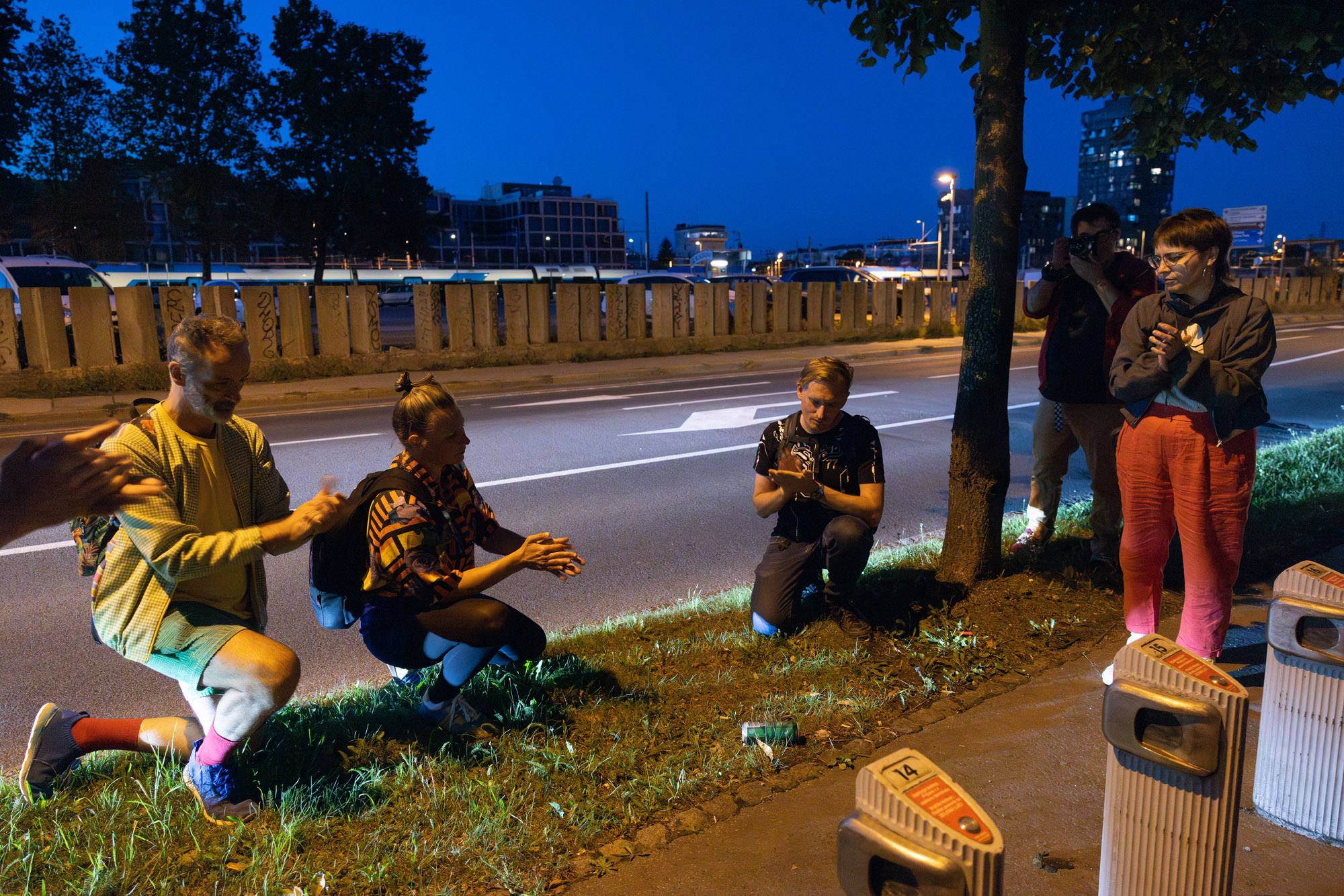 A čemu pravzaprav ploskamo? Kaj je ta LEPOTA, ki jo ugledamo in je koreografinja našemu početju? Odvisno. Med sprehajanjem ob sončnem zahodu se nad nami raztezajo rožnatordeči odtenki neba, zato mnogokrat ploskamo panorami – na primer žerjavom nad gradbiščem Emonike v večerni svetlobi. Recimo temu romantično razumevanje umetnosti kot na slikah romantičnih krajin ali podobah junaka, ujetega v meglice. Ploskamo tudi grafitu za osvoboditev Palestine – je to politična umetnost ali zgolj politika? Ploskamo roži sredi trave – je to tudi romantika ali nemara zenovska preprostost vsakdanje lepote? Ploskamo pločevinki piva na tleh – ironično ali zares? Ploskamo tudi zvoku vlaka nad nami, ploskamo mimoidočim, ploskamo brezi.