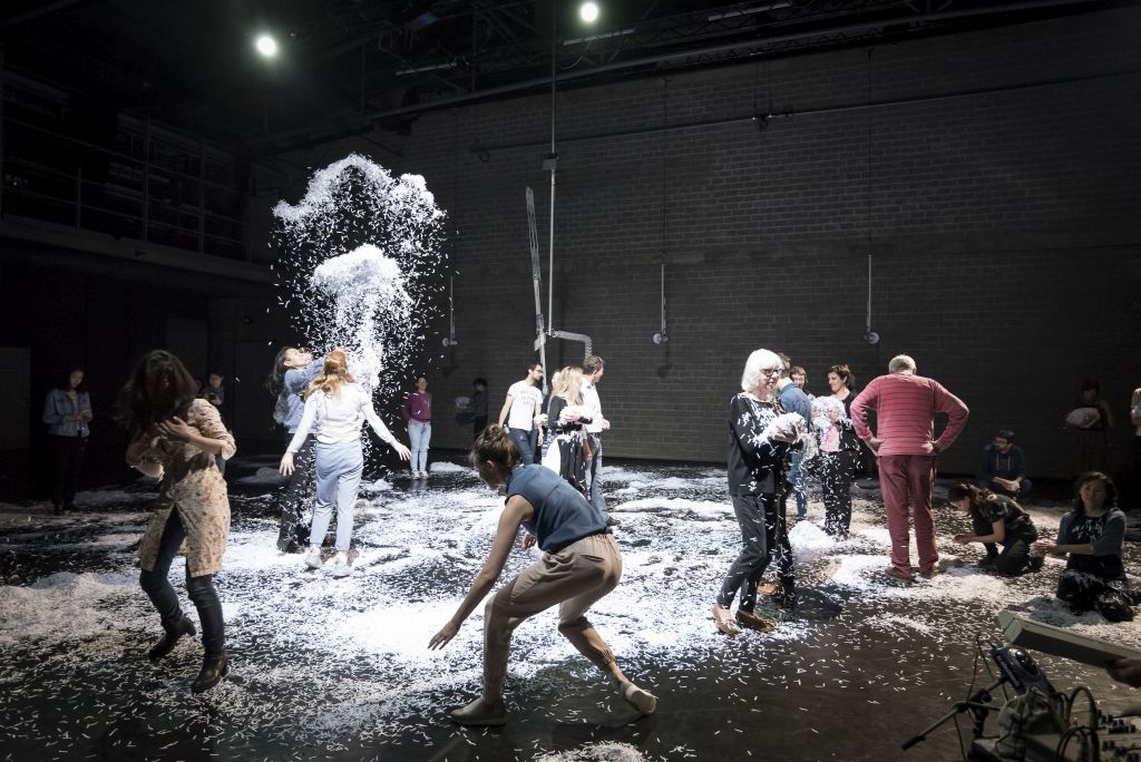 Že ob vstopu v dvorano kot tudi med samim dogodkom je zanimivo spremljati gibanje obiskovalcev, saj nikjer ni nobenih sedežev ali kakršnegakoli označenega posebnega prostora za vstopajoče, tako da so njihovi premiki čisto naključni. Ljudje hodijo naokrog, sedijo ob stenah, se premikajo glede na fokus ostalih. Tudi to, kdo je gledalec in kdo nastopajoči, ni povsem jasno, dokler se iz množice ne izvije nekaj plesalcev, kar ostro poseže v dinamiko ostalih v dvorani. Nekaj časa varno točko opazovanja predstavlja Atsuhiro Ito z nastopom na Optronu - inštrumentu iz predelane neonske luči, spet drugič se opazovanje lahko transformira v pasivno dejavnost rekvizita, ob katerem plesalci izvajajo katerega od več kot stotih potencialnih scoreov. Vse je odvisno od posameznikove odločitve, se bom obrnil stran, se nasmehnil ob očesnem kontaktu, se dotaknil koga, le opazoval kinetične sculpture, podobne vetrnicam Yoko Seyame, bil opora preznojenemu telesu, odšel na drugi konec dvorane, kjer se je zbrala gruča ljudi, ne vidim in ne vem, kaj počnejo?