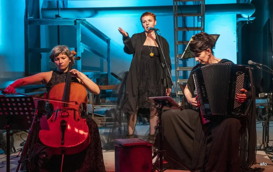 S šankom, neravnimi tlemi in kobajagi okrasno belo opeko, ki je bila svoje dni moderna, na desni strani odra, Kompreshaus še najbolj spominja na kakšen plac na Metelkovi. Še posebej, ker je prizorišče potopljeno v old school alter-rock kombinacijo rdeče in svetlomodre luči, ker so na odru meni-nič-tebi-nič kar tako zloženi kovčki za glasbeno opremo in ker sta čelistka Belma Alić in harmonikarica Belma Šarančić že posedeni na svojih pozicijah pred nami.