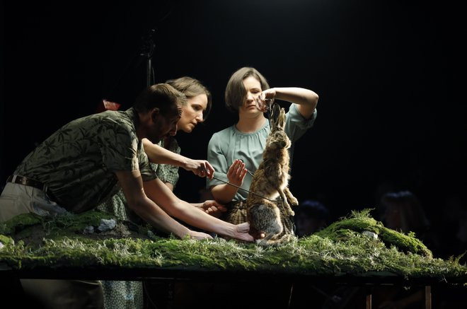 V Tihožitju lahko torej vidimo približevanje več kot človeškemu gledališču. Ekologija v predstavi ni več zgolj tematizirana, vendar vanjo vstopa s svojimi operativnimi principi. Lutkovno gledališče tu kot sam medij izkorišča raznolike mogoče odnose med živim in umetnim, človekom in živaljo v naravi. Že sam pogled na košček realistične narave pred nami, ki pa jo hkrati načenja naše zavedanje, da so ti nekoč živeči zajci pred nami samo še lutke, objekti, ki potrebujejo nekoga drugega, da jih premika, vabi k sprejemanju drugačnih perspektiv. Odsotnost klasične naracije pa je pri publiki nadomeščena z naracijo gledanja.