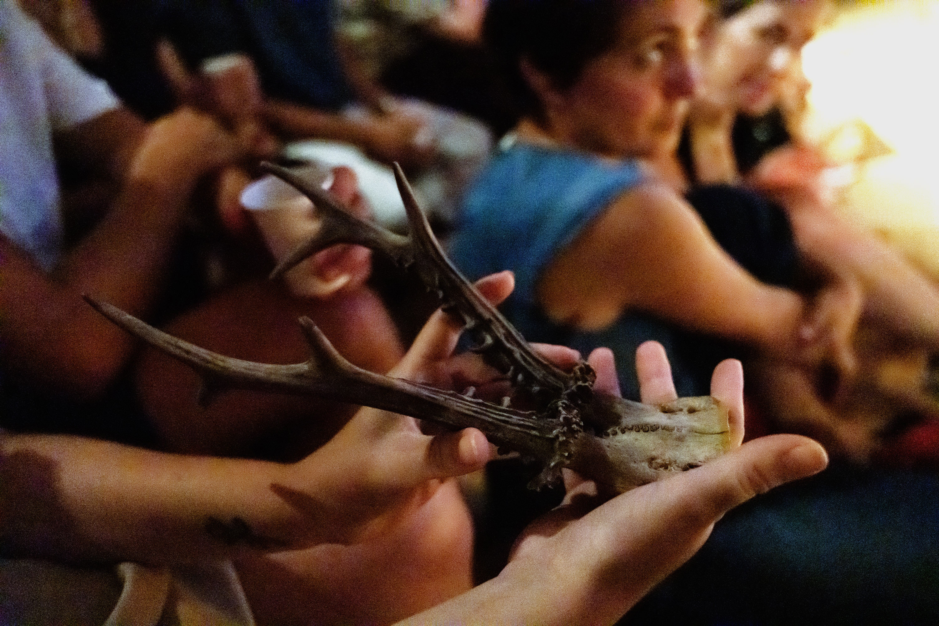Večplastnost obstoja – kjer je človek lahko hkrati voznik in oče – je jedro Poslednje noči jelena, ki mu ne ubeži niti občinstvo. Gledalci smo med predstavo nagovorjeni kot animistični duhovi gozda. Pot jelena zarišemo z jelenjo lobanjo, ki si jo podajamo med sabo. Nekdo izmed občinstva pa prevzame vlogo povoženega jelena, ki je posvečeno poseden na nekakšnem primitivnem oltarju. Gledalci smo žalovalci, ki dvignemo kozarec padlemu jelenu – in smo tudi drevesa, ki obrnejo hrbet človekoma v avtu.