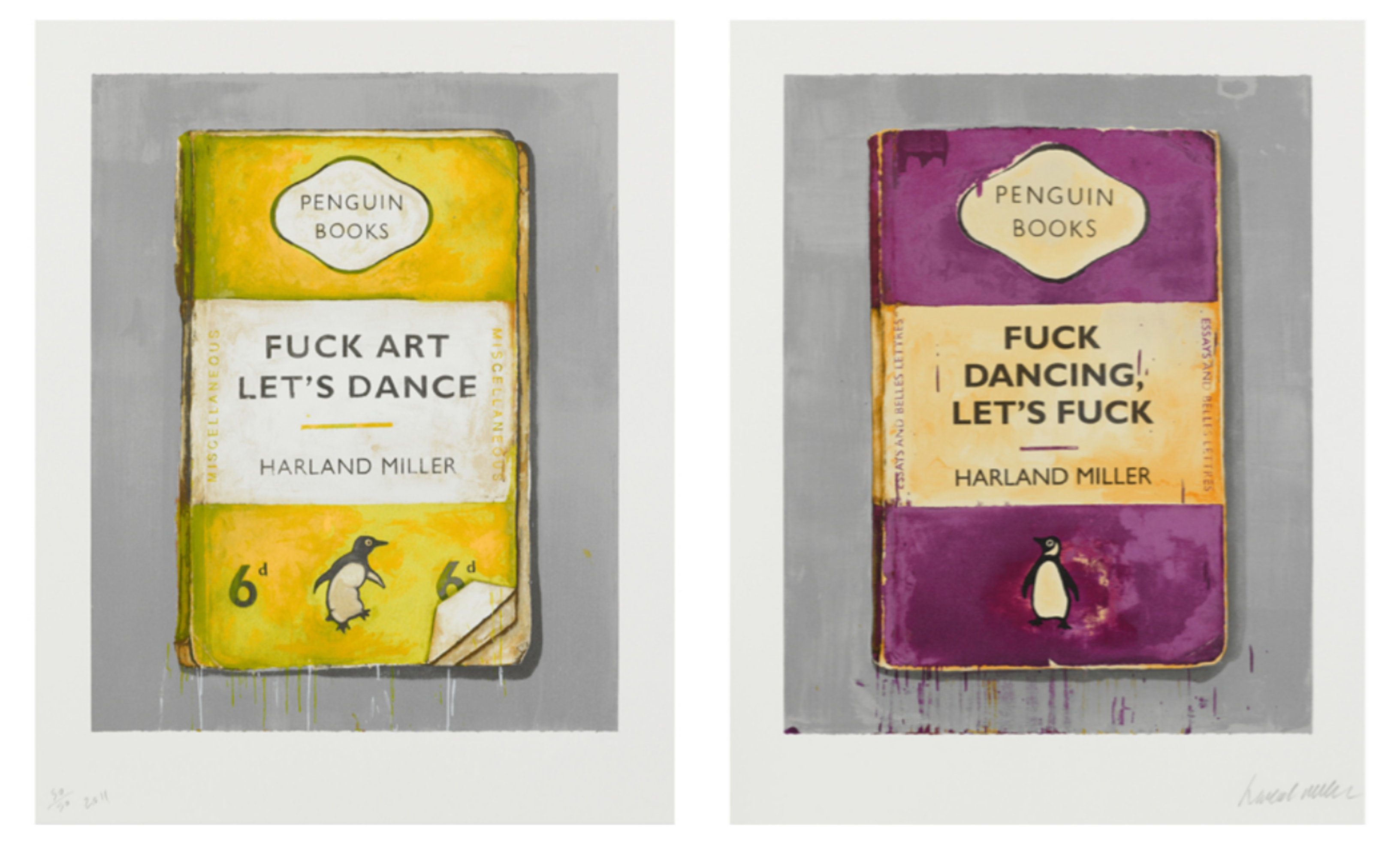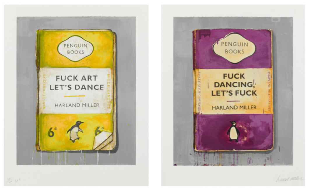 Slika: Harland Miller – Fuck Art Let's Dance & Fuck Dancing Let's Fuck, diptih, 2011