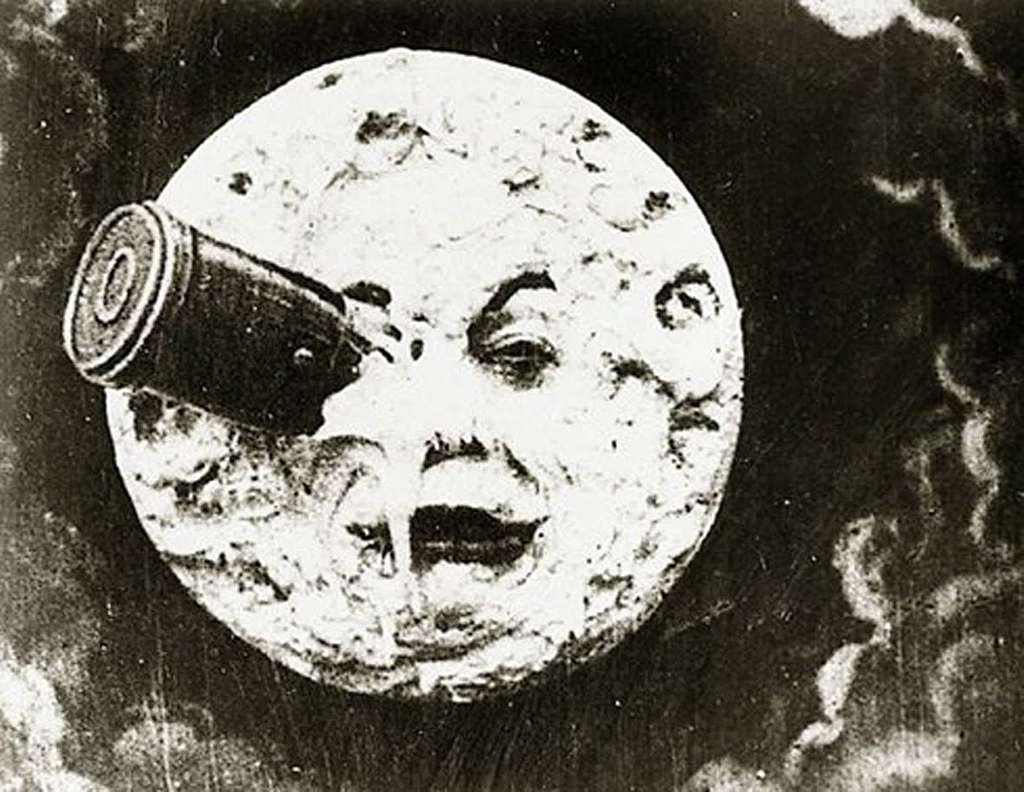 Potovanje na Luno (1902): Leta 1888 je Robert-Houdin zaključil s svojim iluzionistično-magičnim gledališčem in se odločil, da bo rekvizite dal na dražbo. Tam se je znašel tudi mladi Georges Méliès in s prihranki kupil vso infrastrukturo. Obseden s čaranjem in načrti je mladi mož na majhnem odru ustvaril velike trike, prizore, ki povezujejo pravljičnost, fantastičnost, iluzije in burke. V zgodnjih Mélièsovih filmih se pojavljajo stroji, naprave in dekoracije, ki jih je sam ustvaril in poslikal. Od leta 1896 je avtor svoje »gibljive slike« projiciral s kinetografom. Med letoma 1896 in 1913 je v stekleni lopi, spremenjeni v atelje, za svoje filmsko podjetje Star Film Méliès posnel več kot petsto filmov. Mélièsov filmski svet določajo samosvoja estetika in izbor tem, zlasti pa tehnika, temelječa na triku, ki ga je zares mojstrsko uporabljal. Poleg trika zamenjave z ustavitvijo teka kamere Méliès uporablja preliv, postopek, znan iz fotografij duhov. Ob specifično filmskih trikih pa je Méliès še vedno uporabljal tudi trike iz repertoarja gledališča: pogrezna vrata, lutke, pirotehnika, pretirani dekor, žice, vitli in tiri. Leta 1902 je z vsemi do tedaj pridobljenimi izkušnjami ustvaril prvi znanstvenofantastični film Potovanje na Luno. S posneto glasbeno spremljavo francoske skupine AIR.