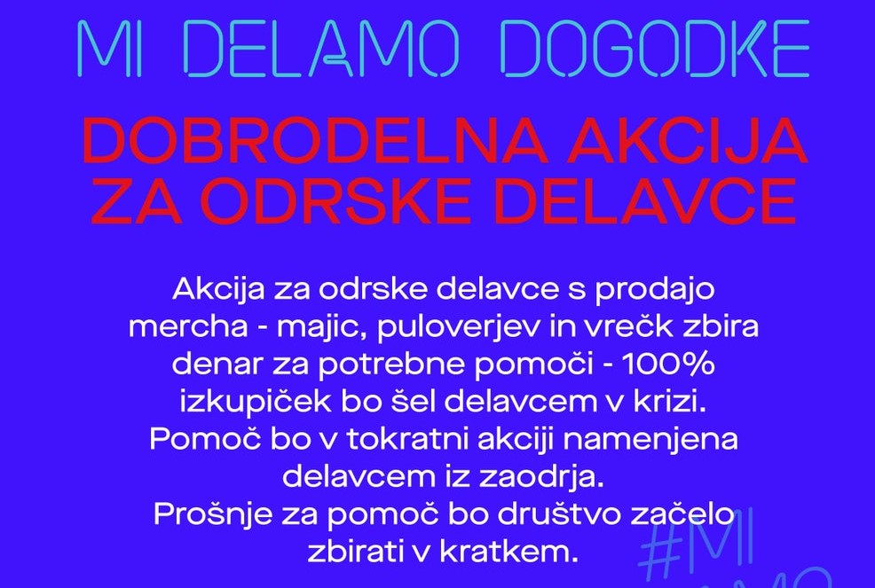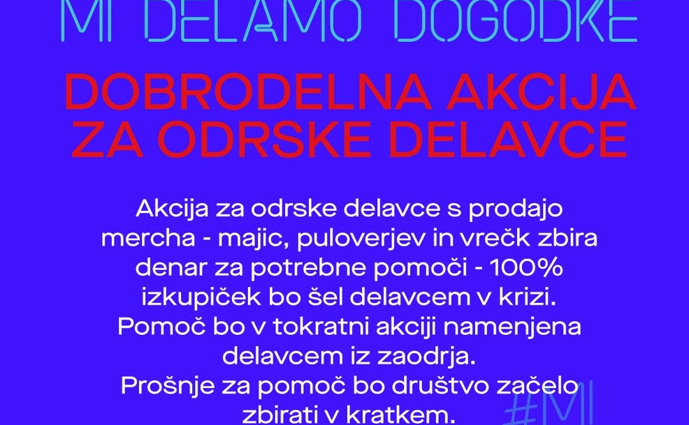 Akcija za odrske delavce s prodajo mercha - majic, puloverjev in vrečk zbira denar za potrebne pomoči - 100% izkupiček bo šel delavcem v krizi.