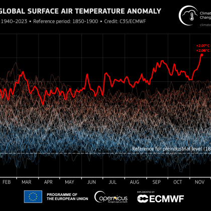 Temperaturna anomalija pri dveh stopinjah.