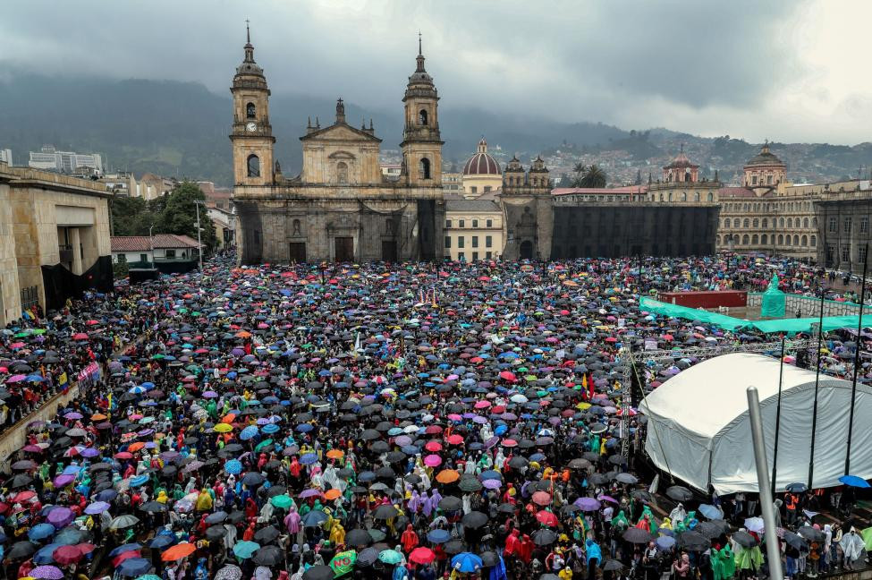 Kolumbijski predsednik Ivan Duque je dan po 250-tisočglavih protestih v prestolnici Bogota razglasil policijsko uro. Prav tako je naznanil odprtost za "nacionalni dialog" prihodnji teden. Protestnikov to očitno ni zadovoljilo, saj se medtem kljub policijski uri že odvijajo novi protesti. Protestniki, ki so v četrtek sklicali splošno stavko in shod skozi mesto, naslavljajo različne problematike v državi, od napovedanih delavskih reform, visoke stopnje brezposelnosti, velikega števila ubitih staroselskih vodij, do korupcije, ki jo očitajo Duqueju.