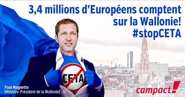 Valonijski parlament je skupaj s tremi drugimi regionalnimi belgijskimi parlamenti zavrnil potrditev sporazuma CETA. Evropska komisija pa je Valoniji do jutri postavila rok, da si glede svoje odločitve premisli. Danes in jutri v Bruslju namreč poteka vrh Evropske unije, kjer bo govora tudi o Ceti. Vendar je premier valonijskega parlamenta Paul Magnette kljub pritiskom s strani Komisije in celo komaj prikritim grožnjam, ki naj bi jih prejemal, izjavil, da je rok preprosto prekratek. To pomeni, da bo podpis sporazuma, ki je za zdaj predviden za prihodnji četrtek, najverjetneje odložen. Razloži Paul de Clerck iz organizacije Climaxi: