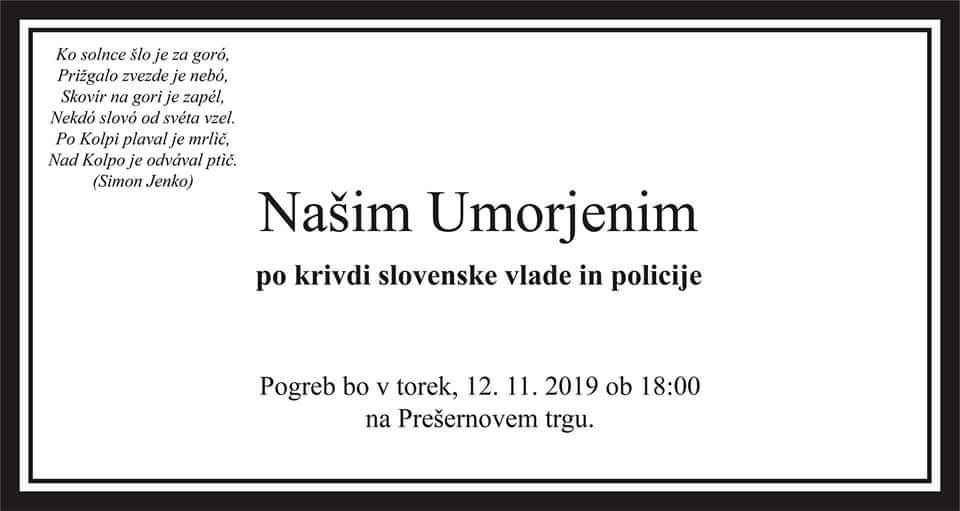 Čez tri ure se bo na Prešernovem trgu zgodil protestni performans, naslovljen Pogreb naših umorjenih, namenjen dostojanstvenemu spominu na žrtve slovensko-hrvaškega šengenskega mejnega režima. Nazadnje je v petek v gozdu v Ilirski Bistrici od podhlajenosti in izčrpanosti umrl 20-letni begunec iz Sirije.