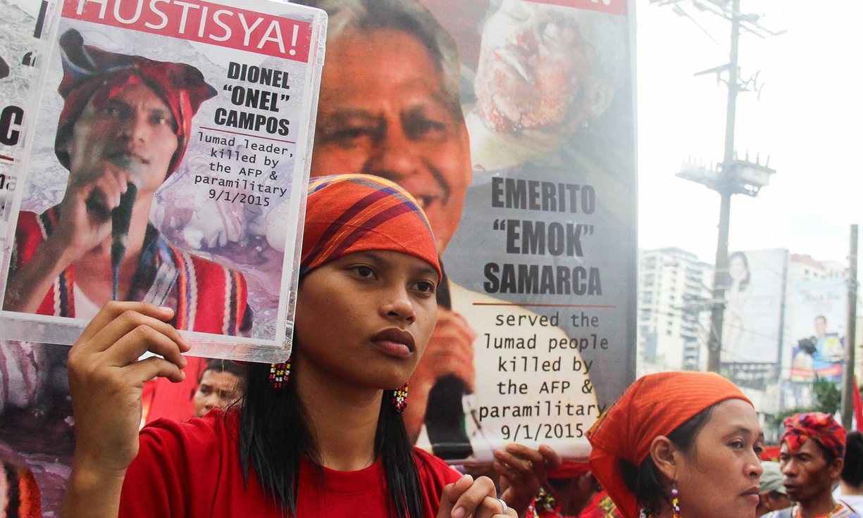 Podobne zgodbe prihajajo s Filipinov, kjer skušnjavo multinacionalkam predstavljajo rudna bogastva, kot so zlato, nikelj in premog. V poročilu je tako opisana zgodba pripadnice ljudstva Lumadov Michelle Campos, katere očeta in dedka je zaradi obrambe svoje zemlje obglavila paravojaška skupina, sicer znani morilci pa niso bili nikoli kaznovani.
