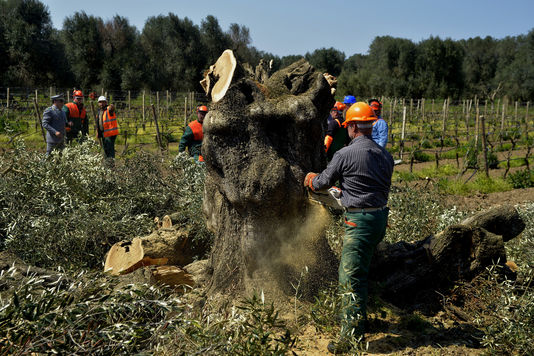 Na dan, ko so prav vse članice Evropske unije na prošnjo Francije aktivirale klavzulo o vzajemni obrambi in s tem, nekateri opazovalci mirijo, da sicer zgolj simbolično, napovedale vojno Islamski državi, pada tudi po simbolu miru, oljki. Evropska komisija ostaja gluha na pritožbe kmetovalcev iz italijanske pete, dežele Apulije, ki trdijo, da je več milijonov obolelih oljk moč ozdraviti in da bruseljski ukaz po sečnji vseh okuženih oljk ni potreben.
