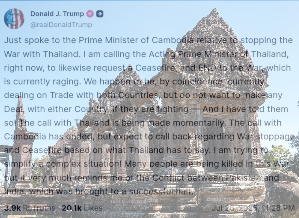 Da sta kamboški premier Hun Manet in tajski vršilec dolžnosti premierja Phuntham Wechayachai na premirje pristala, je po mnenju sogovorca zaslužna carinska politika ameriškega predsednika Trumpa.