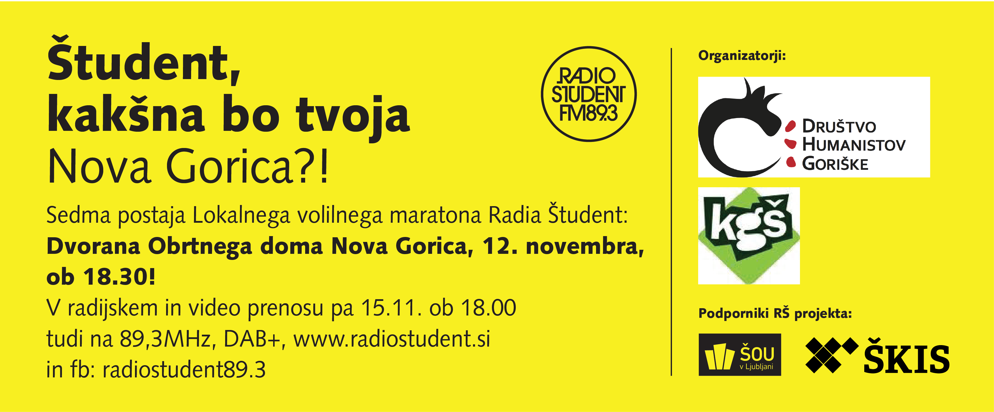 Dogodek organizirajo Društvo humanistov Goriške, Klub Goriških študentov in Radio Študent