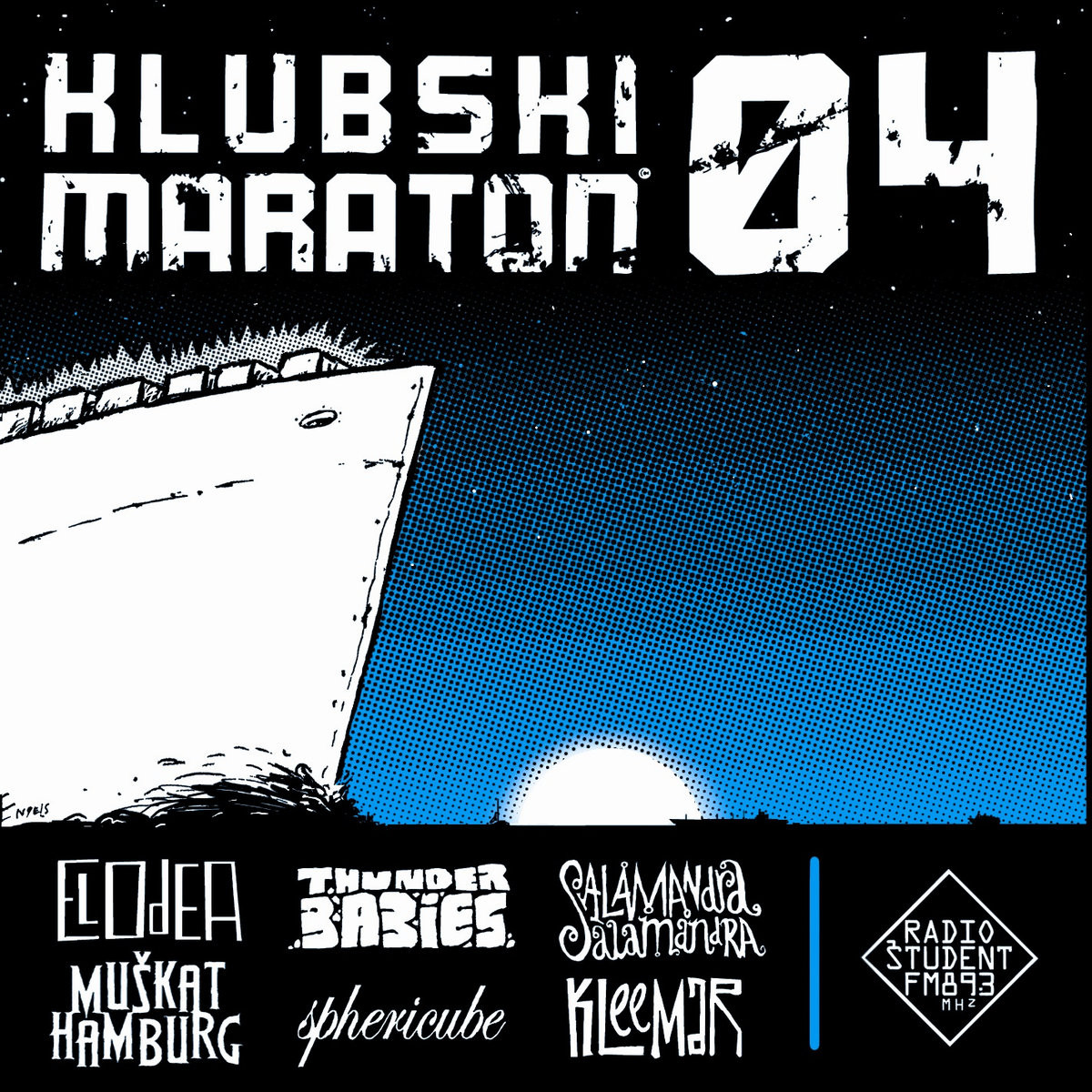 Na že 4. zaporednem Klubskem maratonu je žirija Glasbene redakcije Radia Študent je izmed XX prispelih prijav na natečaj Klubski maraton 2004 izbrala 6 glasbenih izvajalcev, ki so se v letu 2004 udeležili najdaljše in najglasnejše klubske glasbene turneje po Sloveniji.
