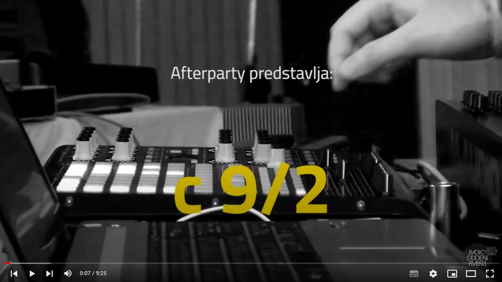 V tokratnem Afterparty-ju smo se lotili tkanju stika med človekom in okolico, med tistim kar nas grabi in tistim, kar moramo zagrabiti, uglasiti in prefiltrirano spustiti skozi čutila - da lažje slišimo in razumemo. Tako kot moramo to dopustiti tudi vsakoletnemu Treskanju, katerega letošnji predstavnik bo tudi hrupno "letalo", mlad dvojec neizrečenih imen - C9|2. ''Zvoki nekdaj stoječe hiše. Terenski posnetki. Dva PC-ja, dva modela, en internet, eno življenje. Hrup.'' S temi besedami v poetičnem poskusu glasbenika/zvočnika povzameta vsoto prijateljskega druženja, ki rezultira v hrupnih artefaktih na poti visoko viskoznega pulziranja. Vaš pulz nastavite na 89,3 MHz!!!
