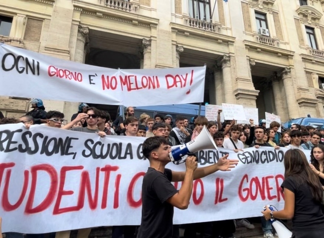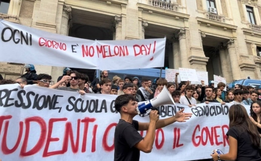 Pred dvema tednoma so v več italijanskih mestih potekale dijaške in študentske demonstracije proti politiki vlade Georgie Meloni z imenom No Meloni Day. Protestnice so tokrat na ulice odšle zaradi nestrinjanja s politiko italijanske vlade v zvezi z genocidom v Palestini, predlogom varnostnega zakona, ki po njihovem mnenju omejuje pravico do protesta, ter izobraževalno politiko vlade. V Rimu in Torinu je prišlo do izgredov, v središču Torina pa je med demonstracijami razneslo doma narejeno eksplozivno napravo, zaradi česar je bilo poškodovanih 15 policistov.